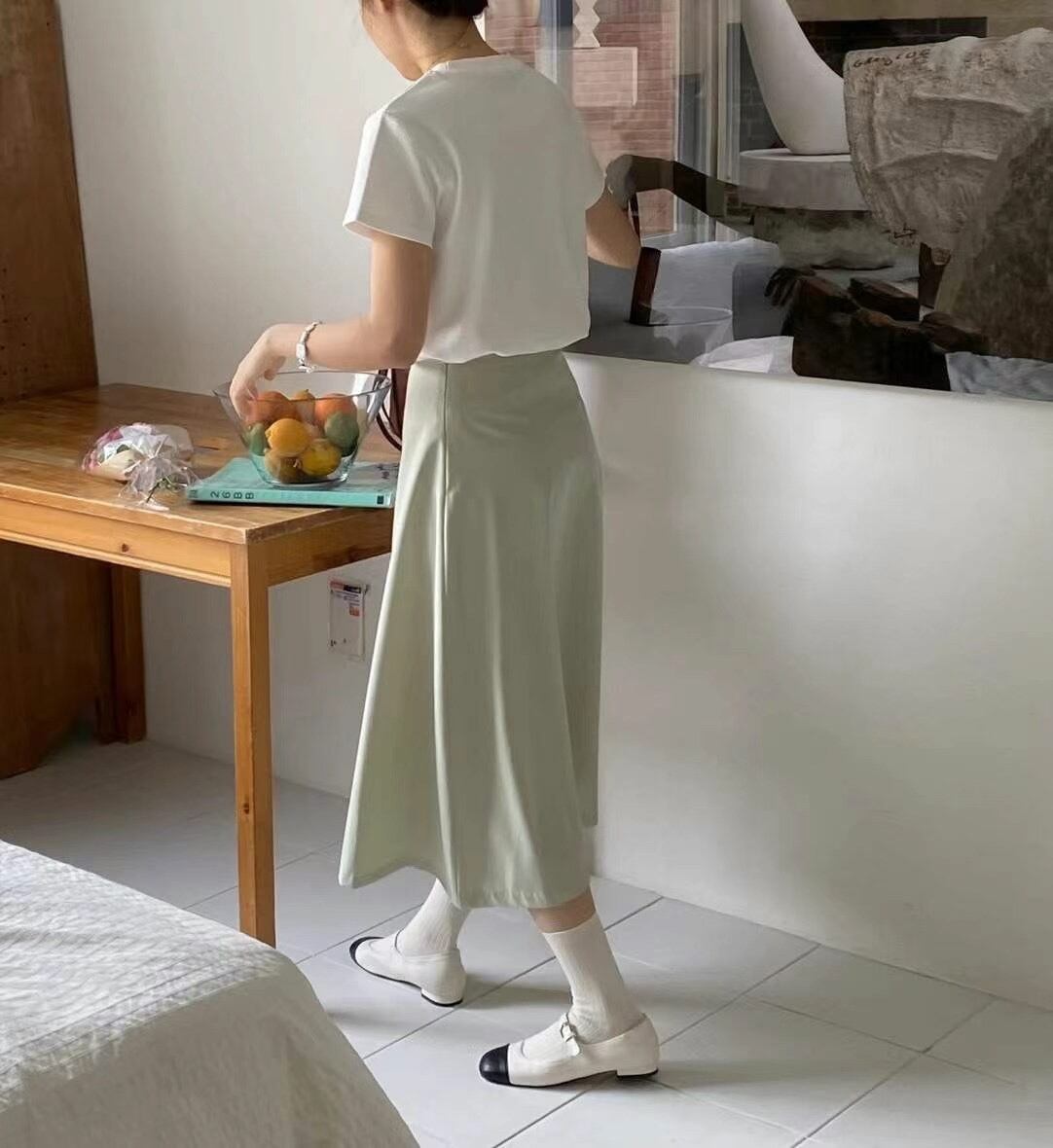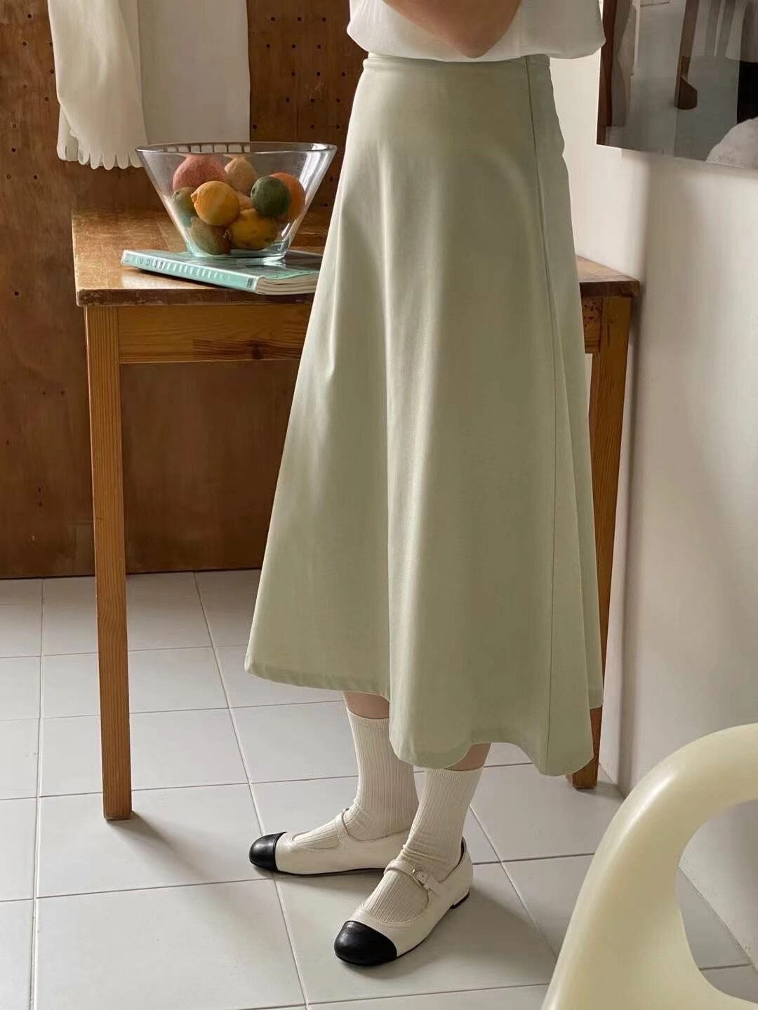 スタンダードハイウェストウェストロングスカート 韓国ファッションソリッド カラー レトロ ソリッドカラー ウエスト muzly92967964794