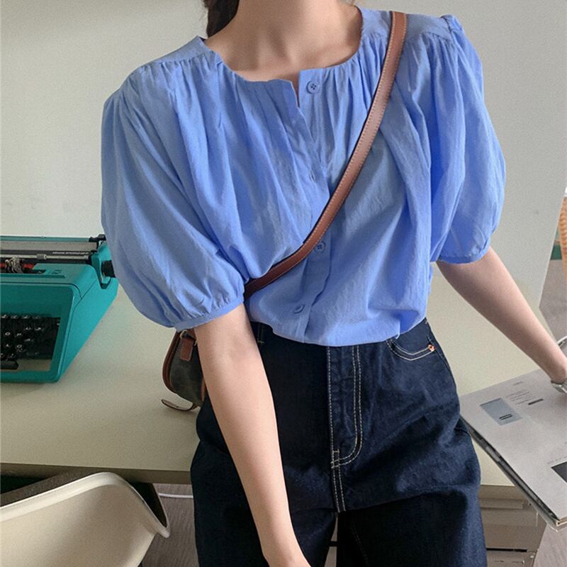 NEW夏服スリーブラウンドネックルーズシャツ トップス レディースハイウェストショーツ 夏物 Oネック ウエスト muzly29284436035