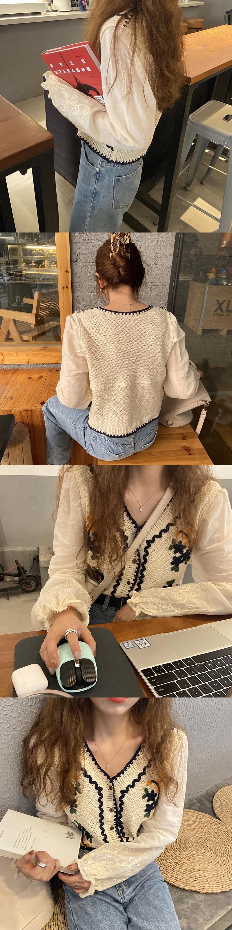 秋物スタンダード刺繍Flowerデザイン レーススリーブセーター シャツ 長袖 ロング ランタンスリーブ レトロ オータム フラワーデザイン ステッチ muzly64617316276 | Neatly