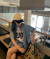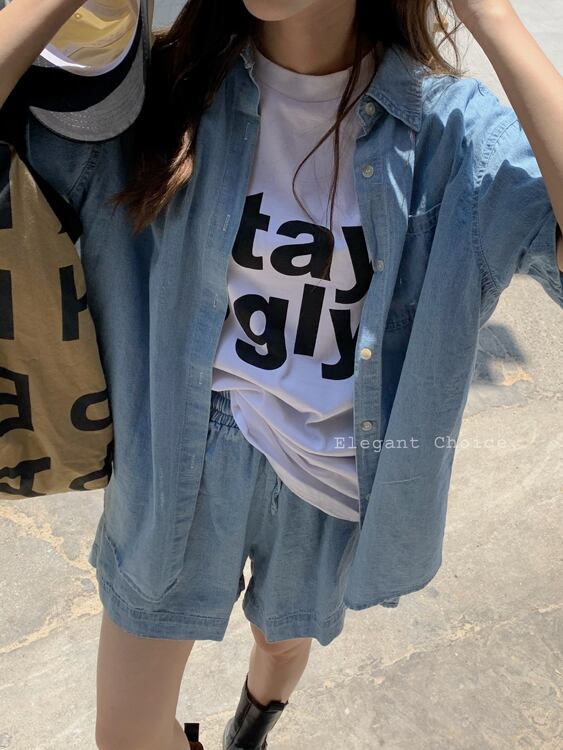 韓国ファッションNEW夏服スタンダードルーズシャツ ハイウェストショーツ レディース レトロ 夏物 ウエスト muzly62865221342