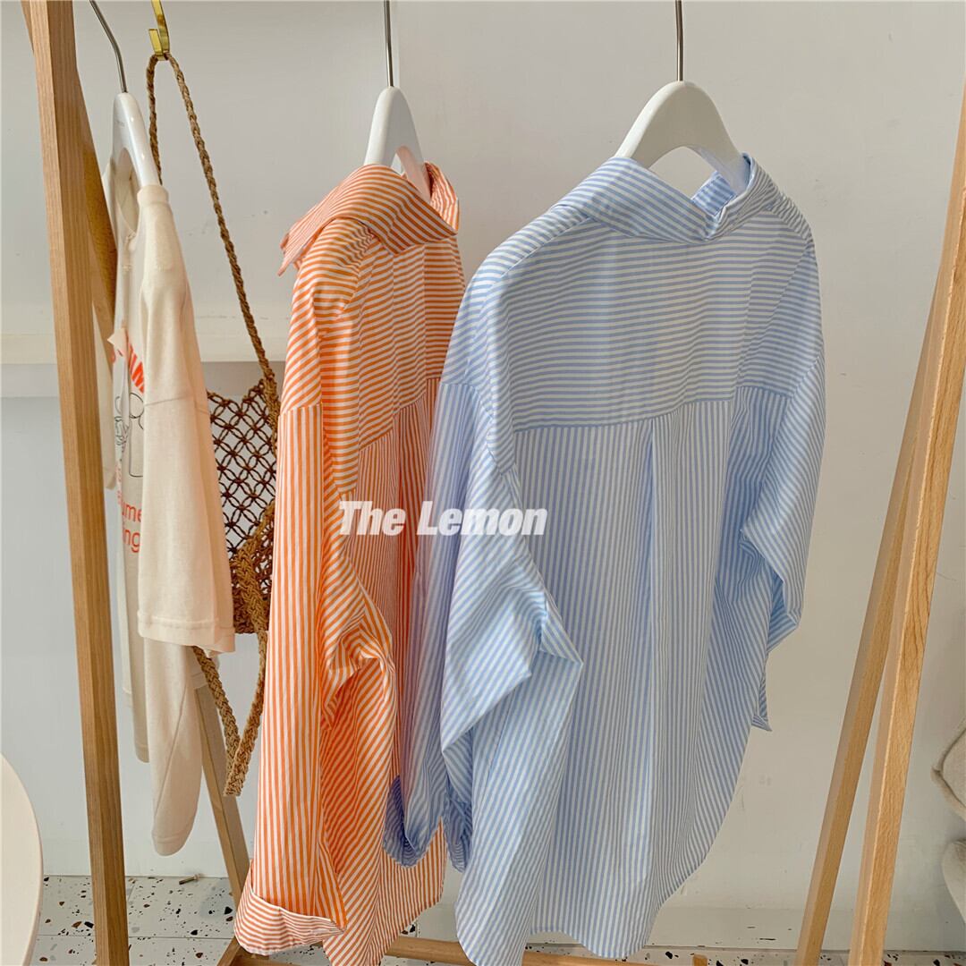 ミニマリストストライプシャツ スタンダードホワイトルーズレディース ロング レトロ ボーイズ 長袖 muzly13073093426
