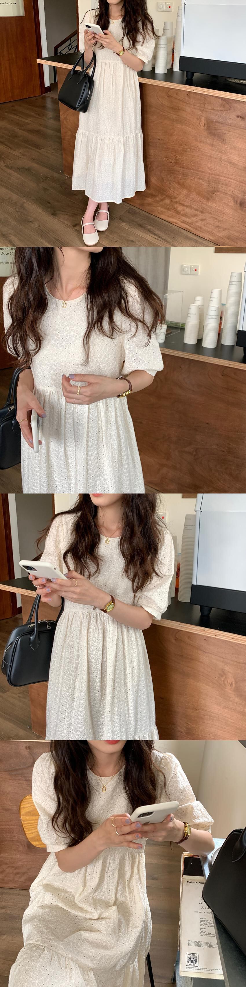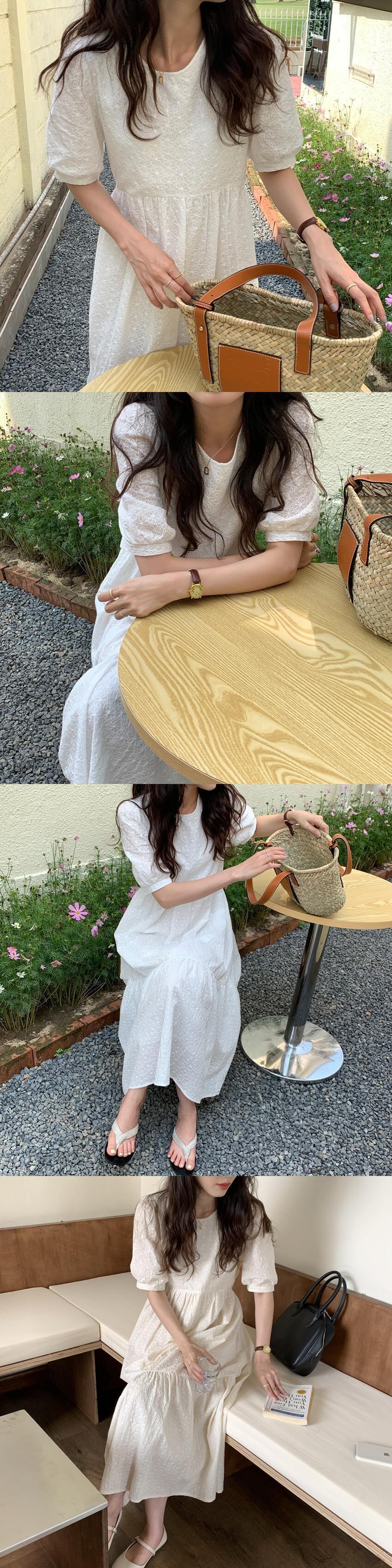 韓国ファッション夏服スタンダード刺繍ラウンドネックスリーブロングスカート ウェスト半袖ワンピース ショート レトロ ハーフスリーブ 夏物 Oネック ウエスト muzly61303332688