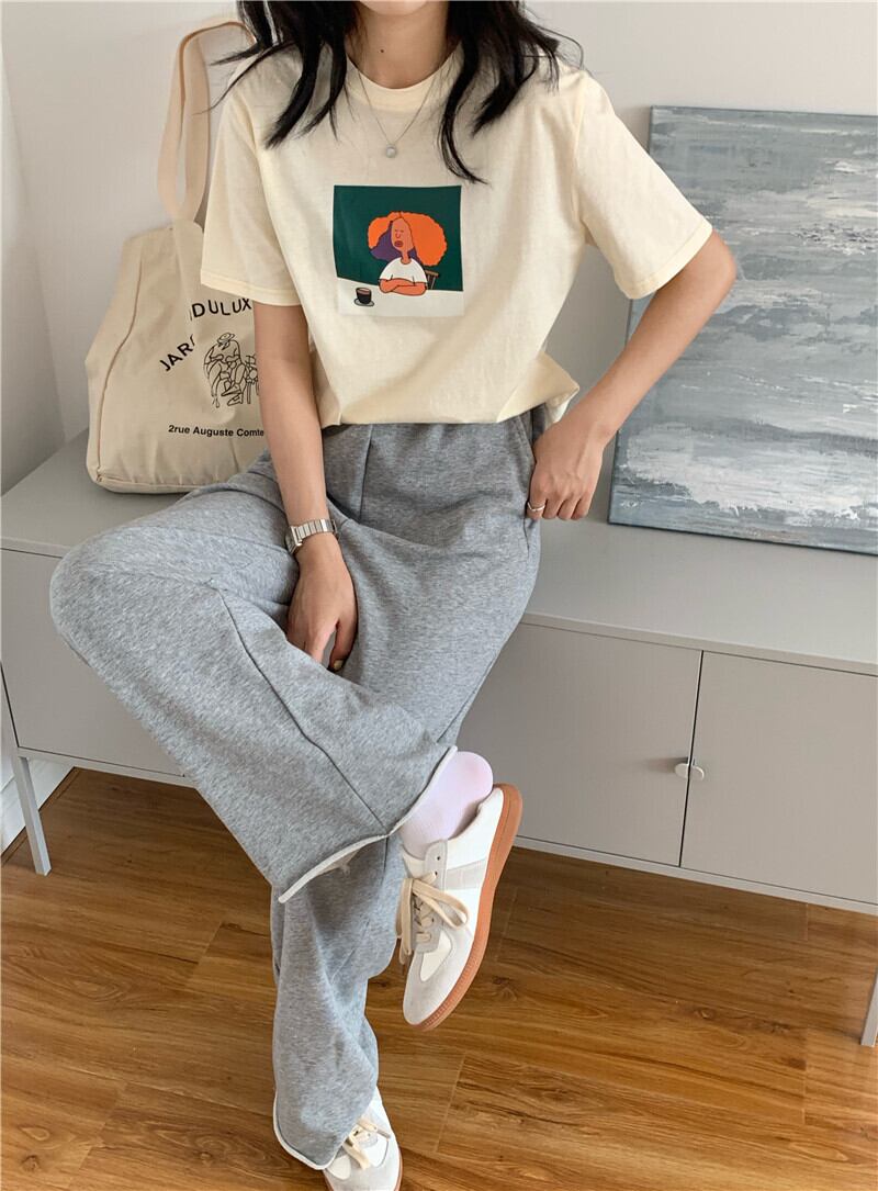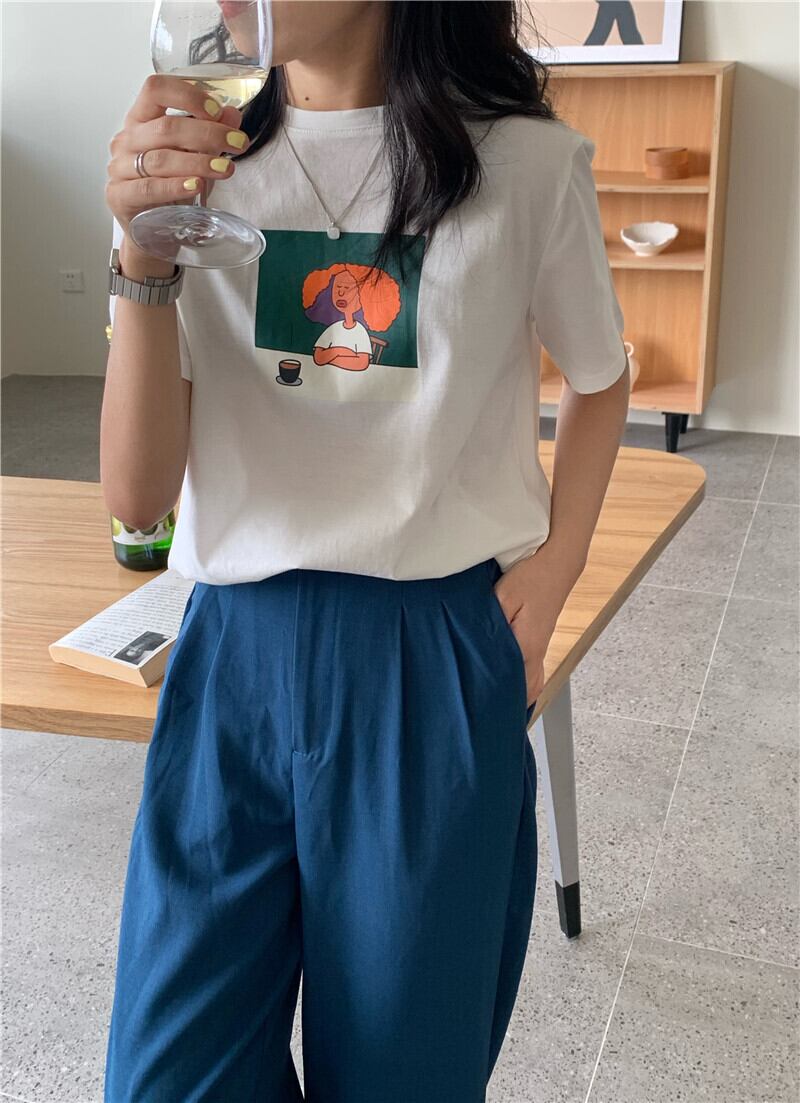 韓国ファッションNEW夏服ラウンドネックプリントプルオーバー ブラウス ルーズカジュアルTシャツレディース 大人ガーリー スウィート キュート 夏物 Oネック muzly72037437472 | Neatly