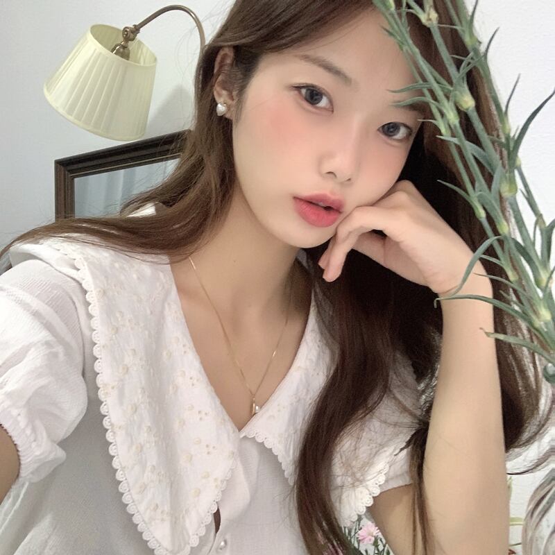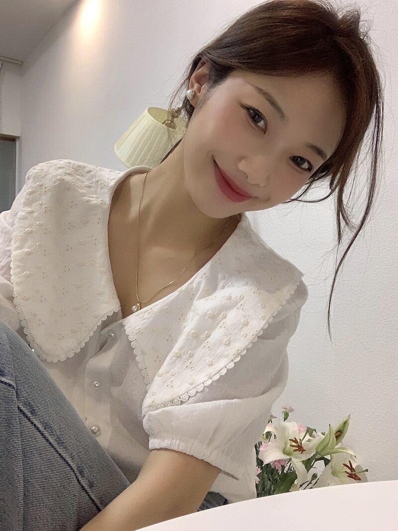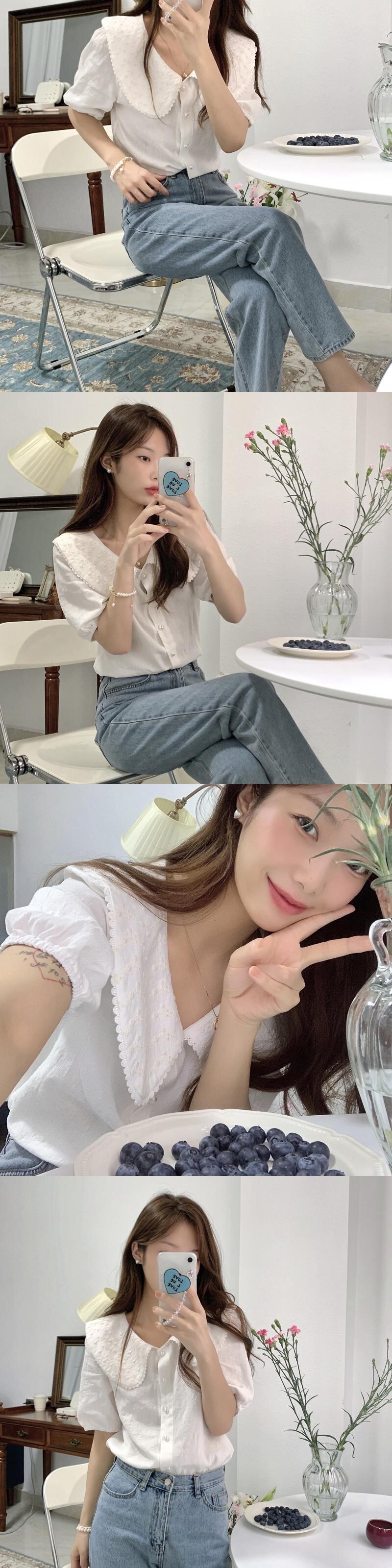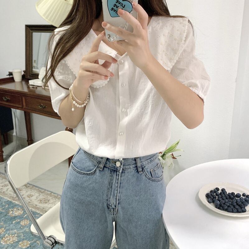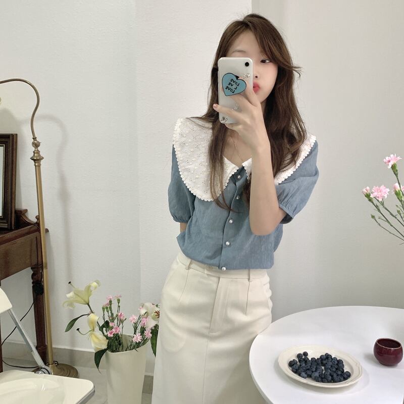 韓国ファッション夏服レースカラートップス ブルールーズシャツ 夏物 muzly51845807419