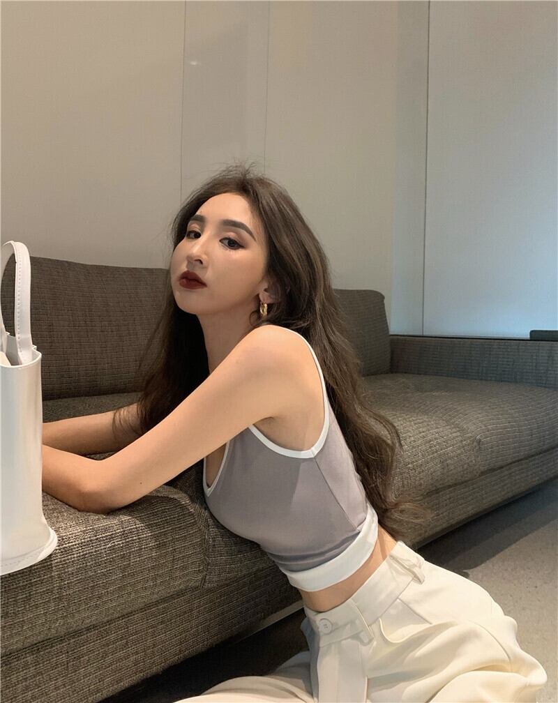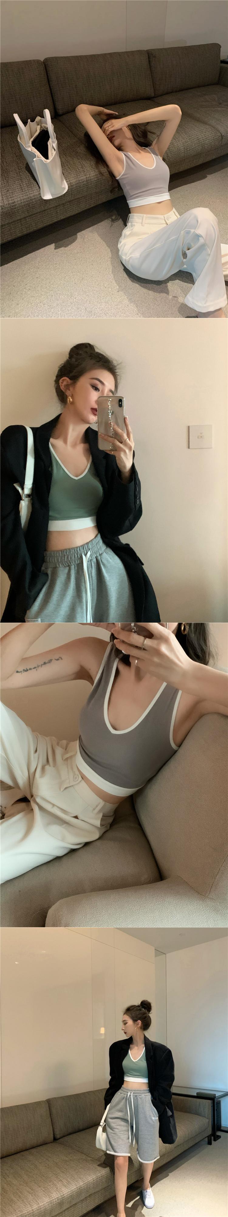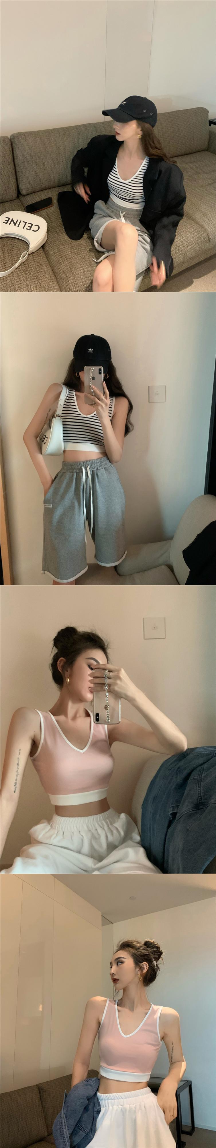 NEW夏服ハイウェストクロップドトップス Vネック 夏物 ウエスト muzly88781356820