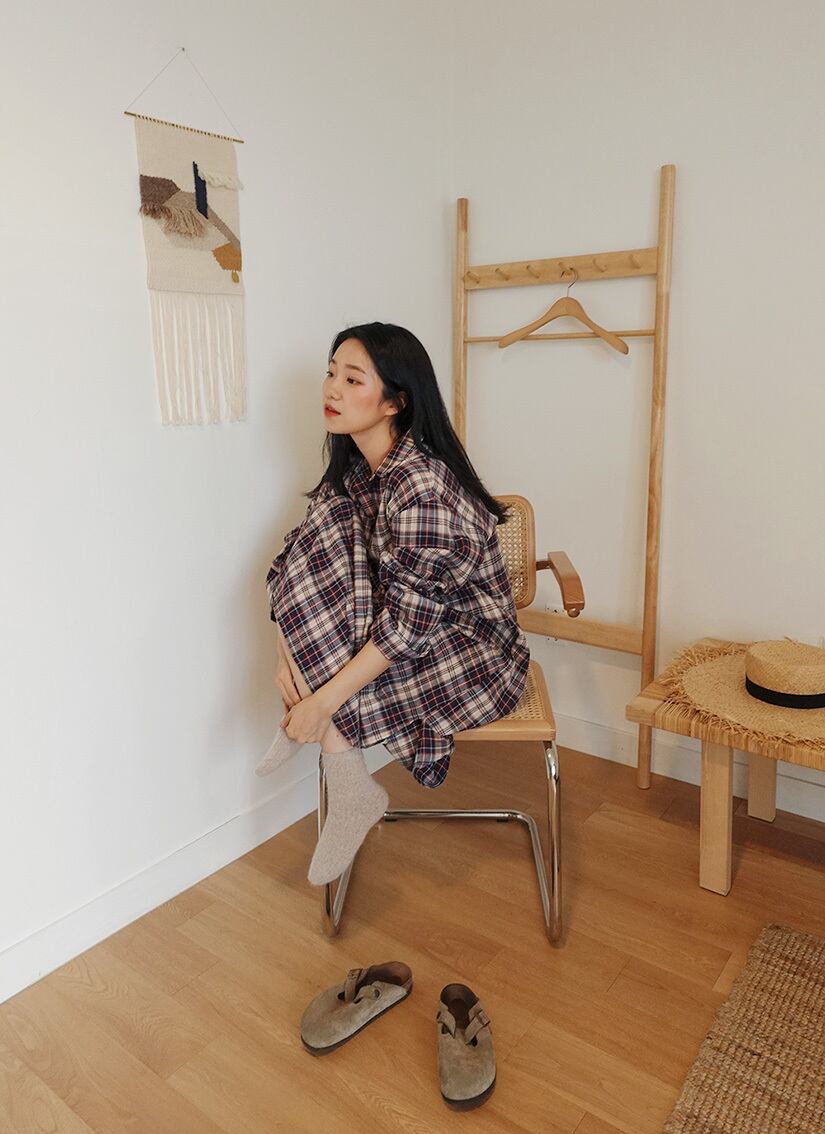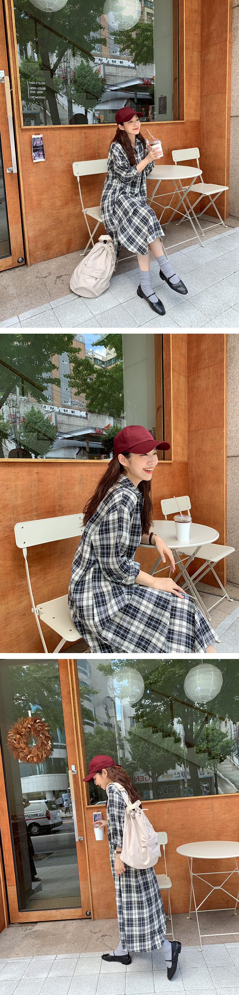 韓国ファッションスプリング格子柄ルーズロングカラーシャツ ワンピース 春物 長袖 muzly29675586748