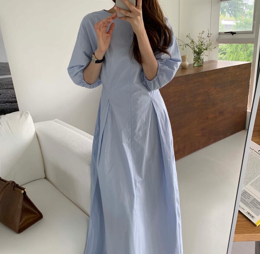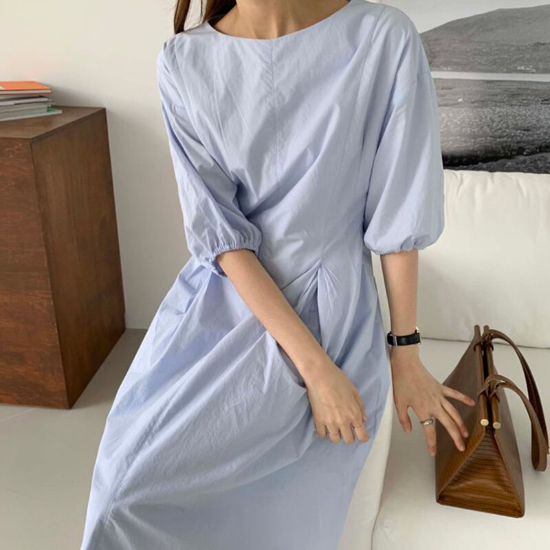 韓国ファッション夏服ソリッド カラーラウンドネックスリーブロングスカート ウェストルーズ薄手ミニ ワンピースワンピース 夏物 Oネック ソリッドカラー ウエスト muzly71780277458 | Neatly