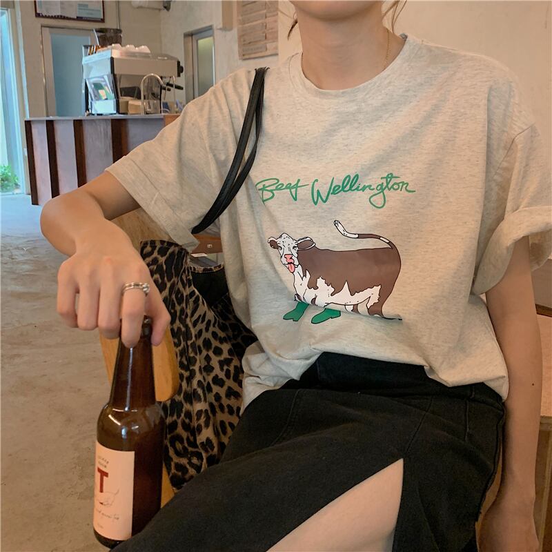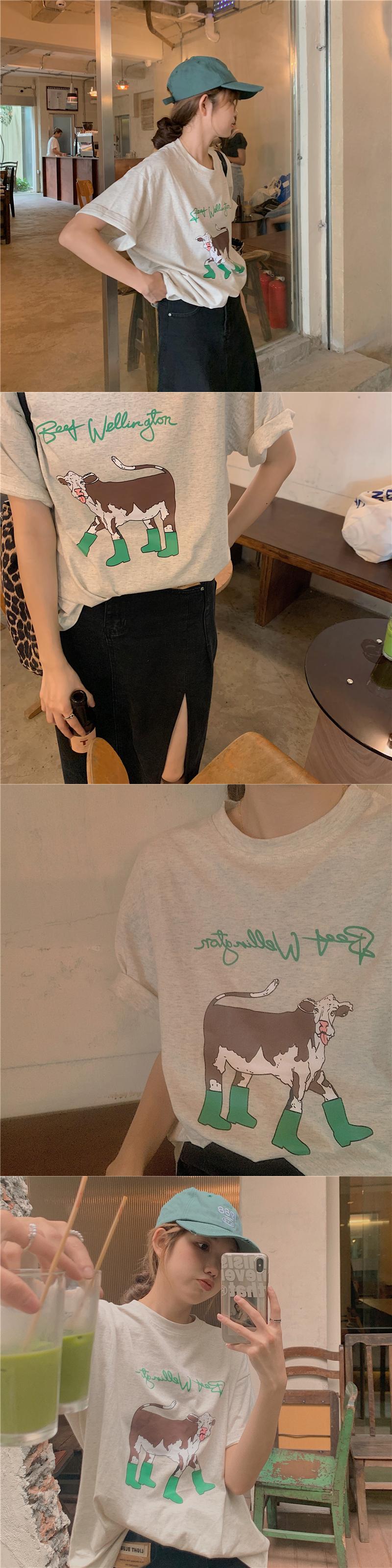 NEW夏服ラウンドネックプリント柄プルオーバー ブラウス ルーズTシャツレディース 夏物 Oネック muzly8912360287