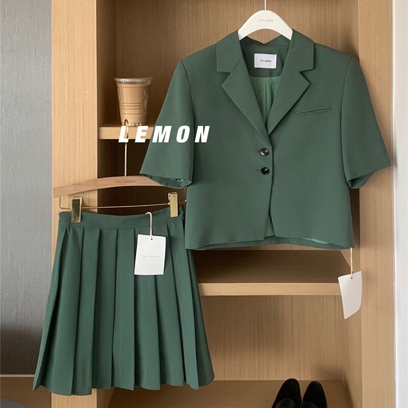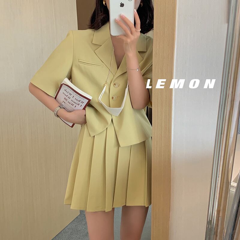 NEW夏服スタンダードカラー半袖スリーブシャツ ジャケット ハイウェストウェスト薄手プリーツスカート ショート レトロ ハーフスリーブ 夏物 ウエスト muzly31937332975 | Neatly