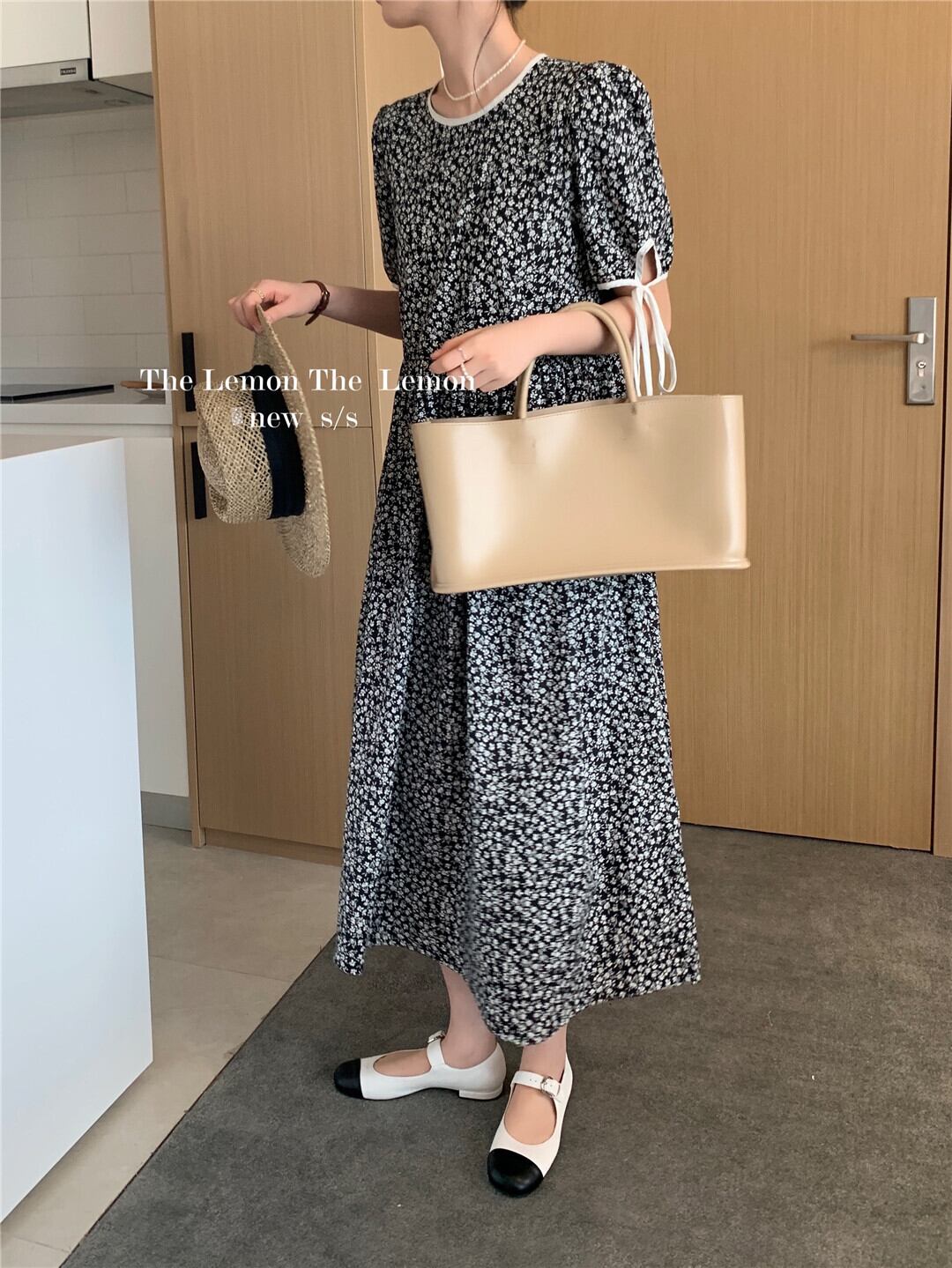 夏服カラーラウンドネックスリーブロングフローラルスカート ルーズ薄手ミニ ワンピースワンピースレディース 夏物 花柄 Oネック muzly78385891227