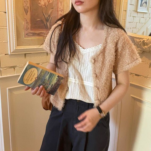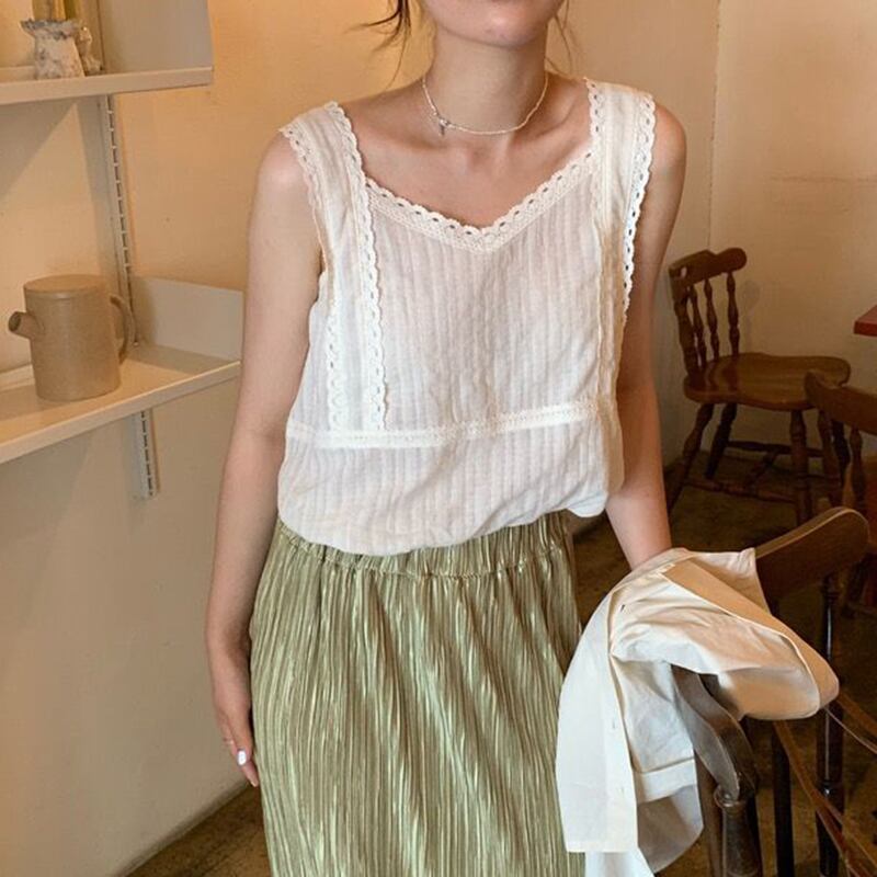 韓国ファッションNEW夏服ダークパターンレースVネックルーズノースリーブシャツ レディース 大人ガーリー スウィート キュート カジュアル 夏物 muzly45035415933