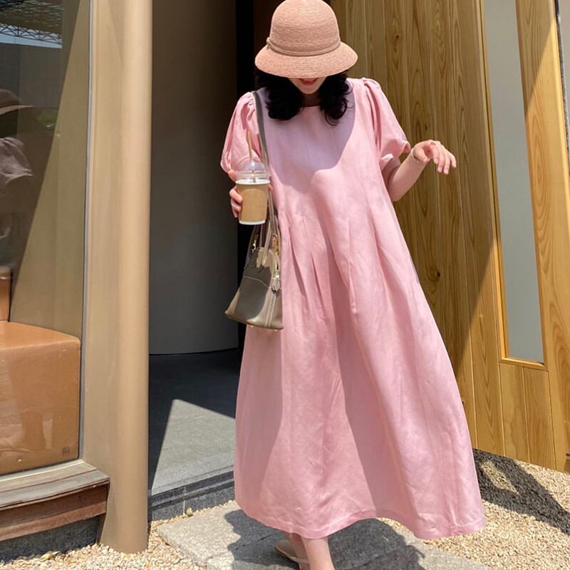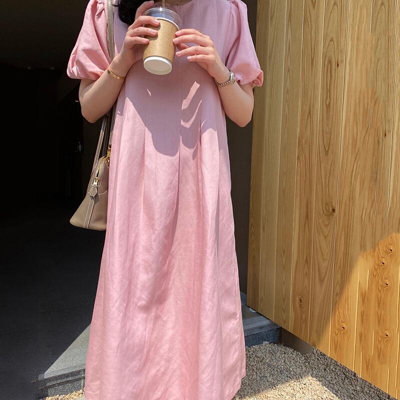 韓国ファッションラウンドネックソリッド カラーパフスリーブスリーブロングスカート 夏服ルーズミニ ワンピースワンピースレディース 夏物 Oネック ソリッドカラー muzly40510322987 | Neatly