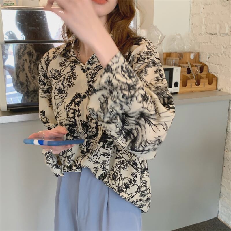 夏服ブラックホワイトルーズシャツ レディース ロング 夏物 長袖 muzly22625875251