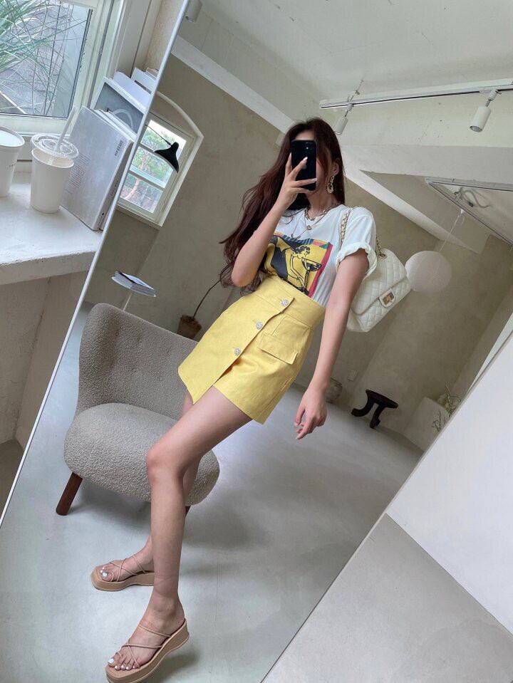 韓国ファッション夏服ラウンドネックプリント柄Tシャツトップス ハイウェストウェストスカート 夏物 Oネック ウエスト muzly34790975000