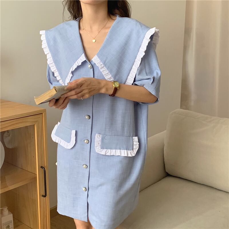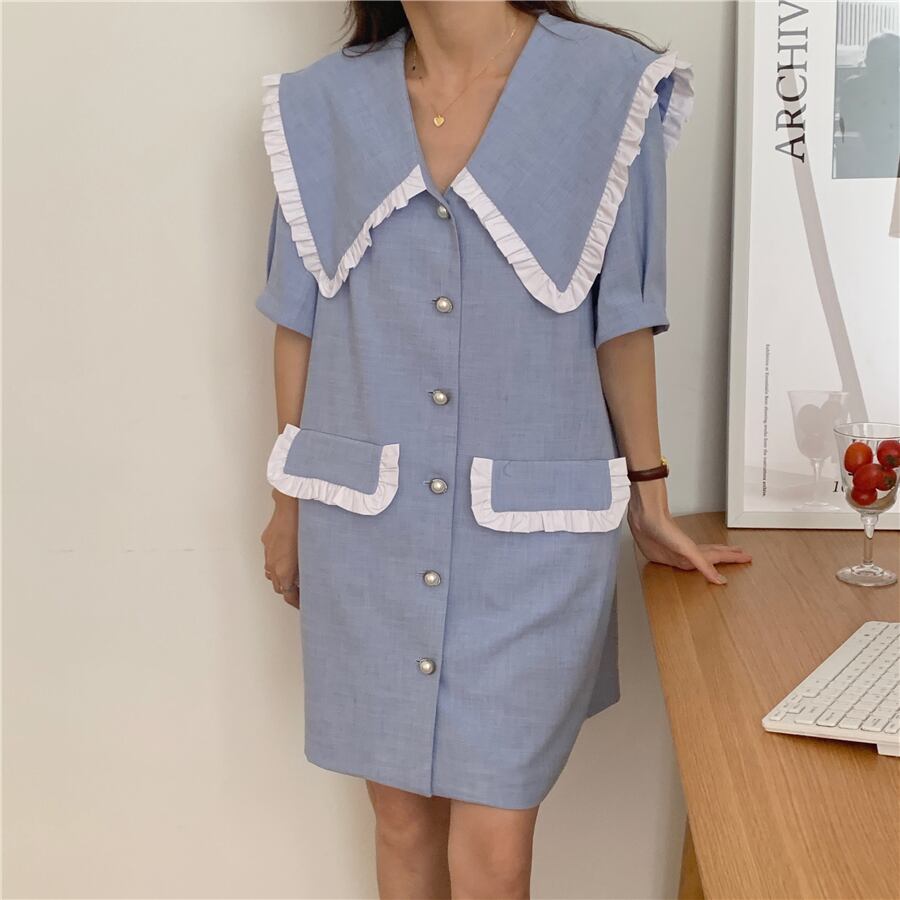 韓国ファッション夏服スタイルカラースカート ルーズ薄手ミニ ワンピースワンピースレディース 大人ガーリー スウィート キュート カジュアル 夏物 muzly15554671094