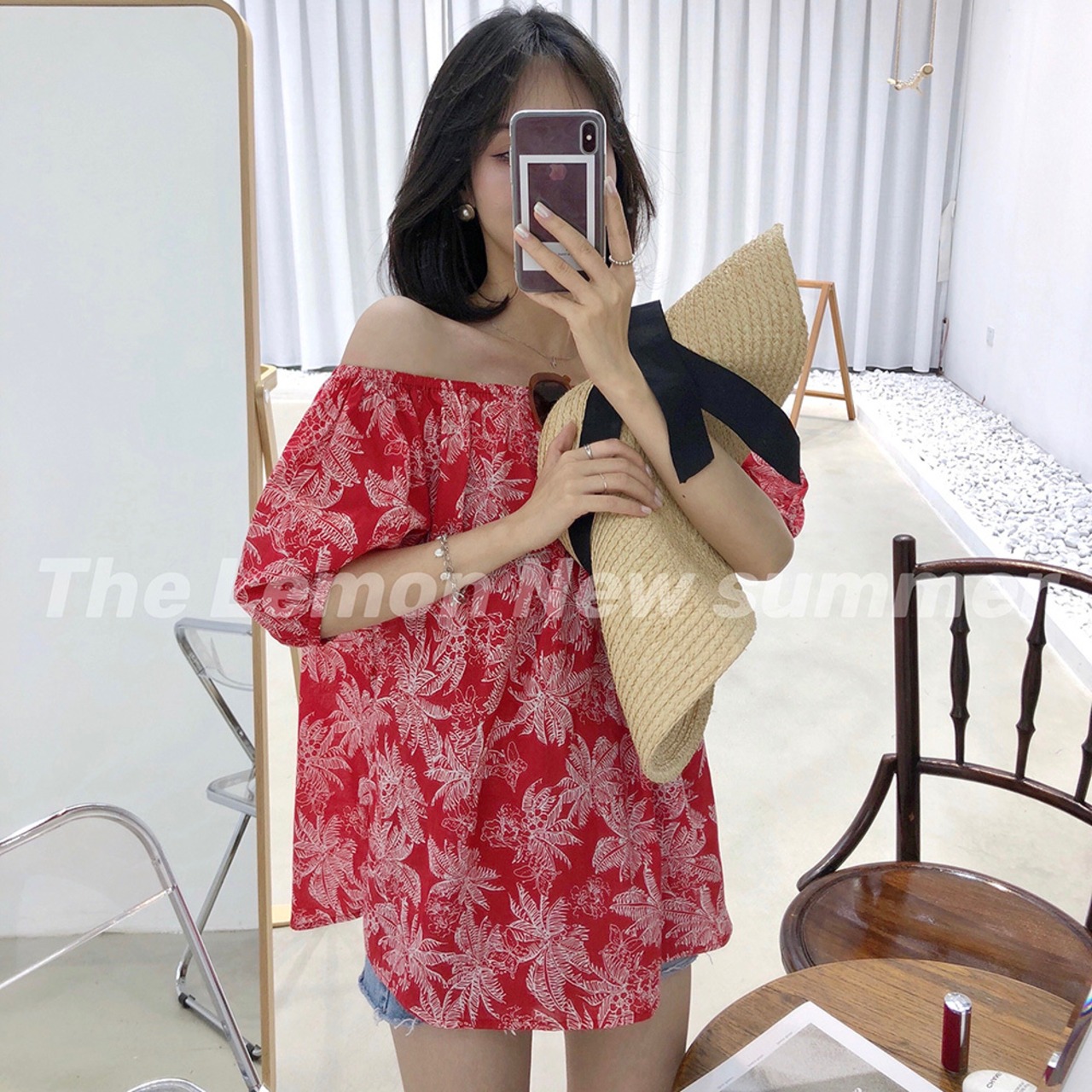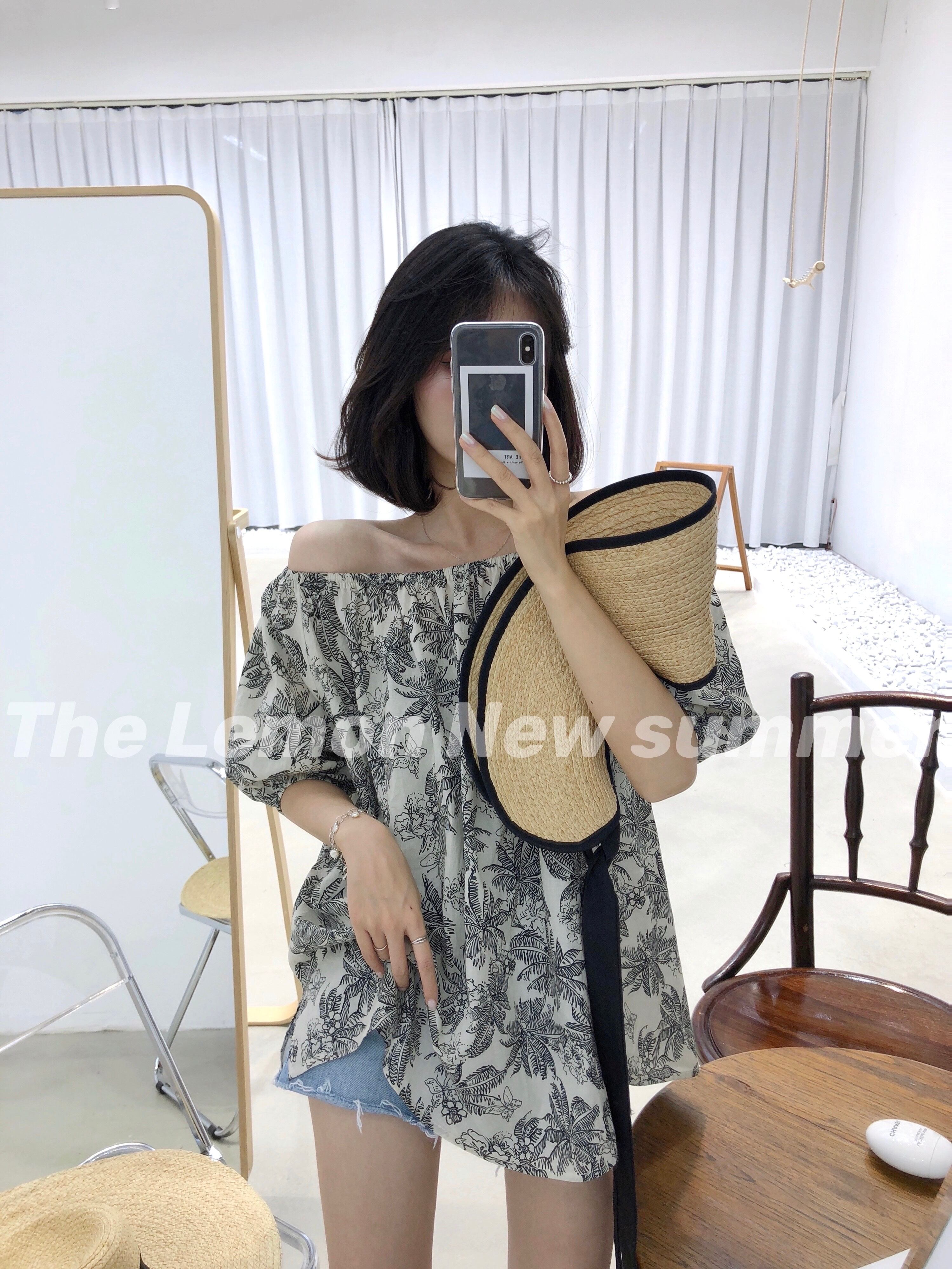 ストラップレスプリント柄シャツ トップス ルーズレディース muzly2370521837