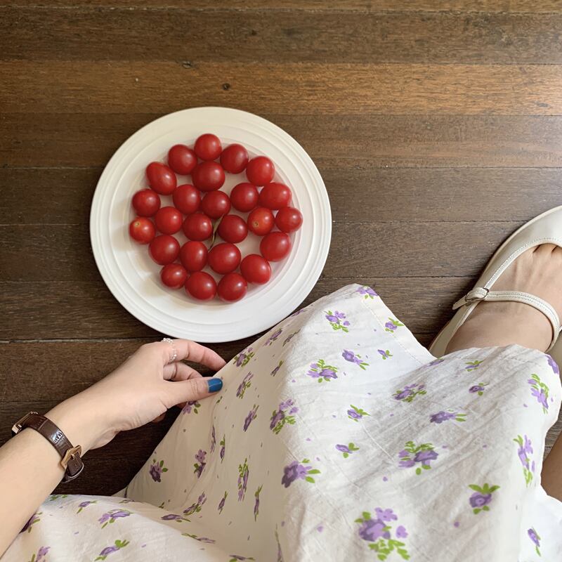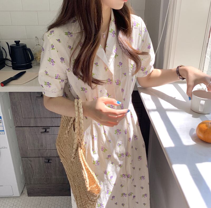 韓国ファッション夏服スタンダードカラーフローラルスカート ロングウェストミニ ワンピースワンピース レトロ 夏物 花柄 ウエスト muzly27501310142