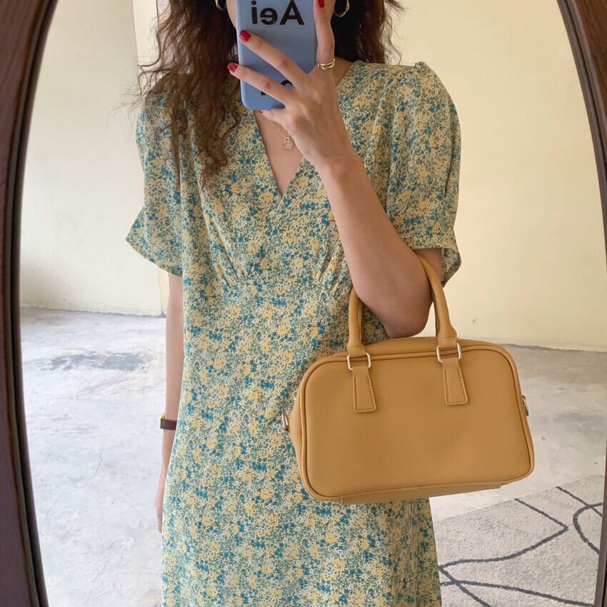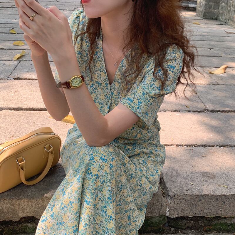 NEW夏服スタンダードVネックロングフローラルスカート ウェストミニ ワンピースワンピースレディース レトロ 夏物 花柄 ウエスト muzly70150905292