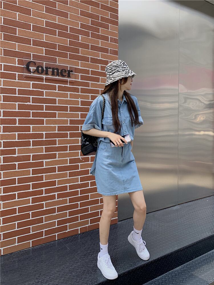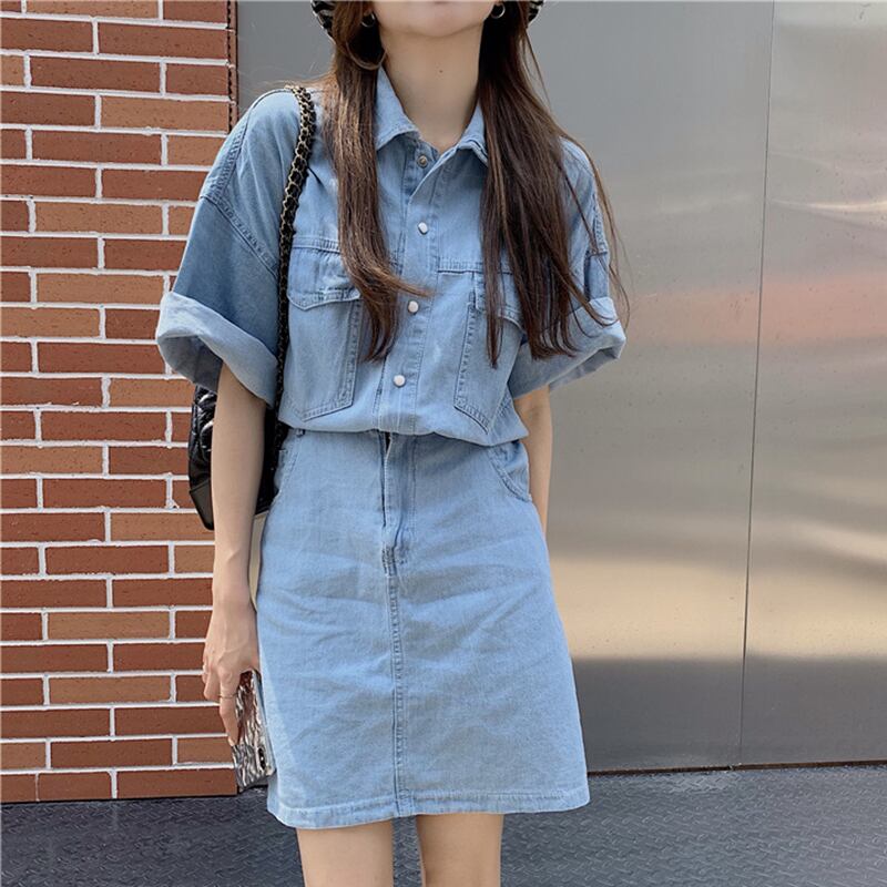NEW夏服スタンダードシャツ トップス ハイウェストウェストスリムスカート レディース レトロ 夏物 ウエスト muzly4608300275