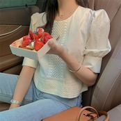 韓国ファッション夏服ラウンドネックスリーブトップス ルーズ半袖シャツ レディース ショート ハーフスリーブ 大人ガーリー スウィート キュート カジュアル 夏物 Oネック muzly31226379295 | Neatly