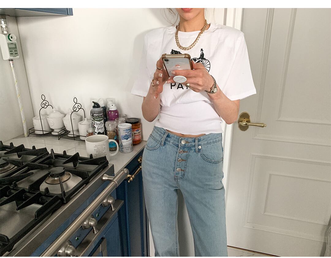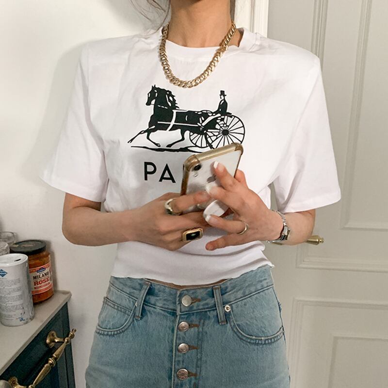 韓国ファッションNEW夏服ラウンドネックプリントウェスト薄手ショートスリム半袖スリーブTシャツトップス レディース ハーフスリーブ 夏物 Oネック ウエスト muzly90406453988