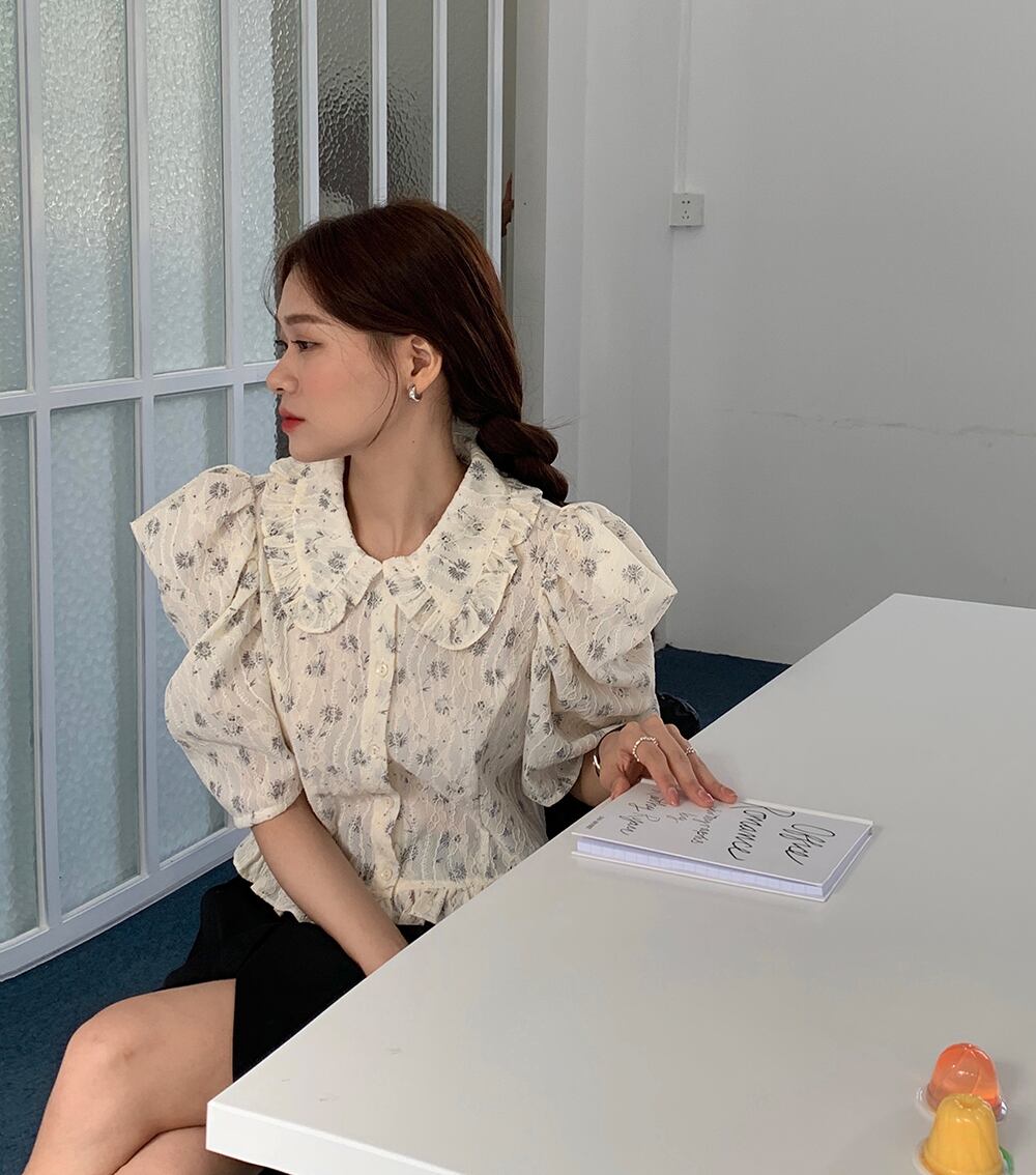 夏服スタンダードカラースリーブシングルブレストシャツ トップス レトロ 夏物 muzly93504211784
