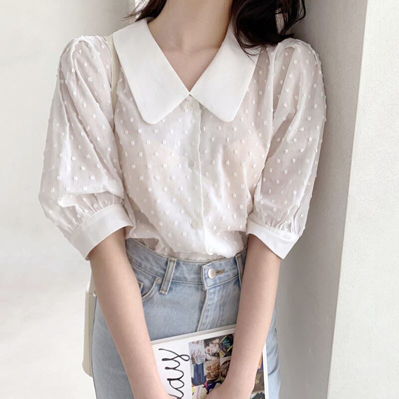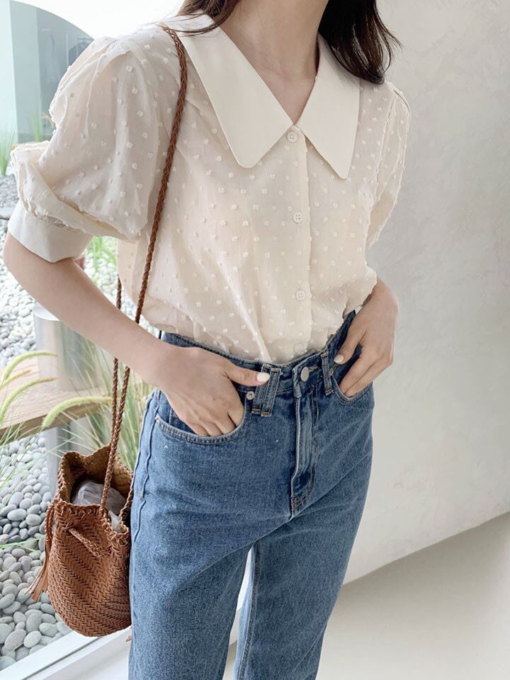夏服カラーパフスリーブスリーブルーズシャツ トップス レディース 大人ガーリー スウィート キュート カジュアル 夏物 muzly89018507162