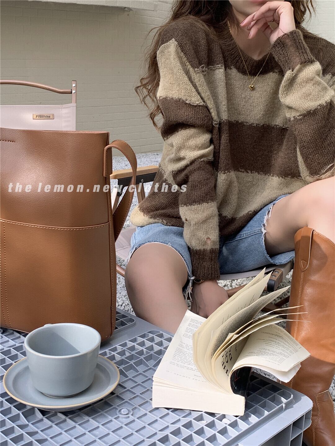 色:黒と白のストリップ,コーヒー色