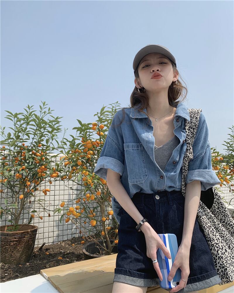 夏服スタイルスタンダードルーズシャツ レディース レトロ 夏物 muzly39519038169
