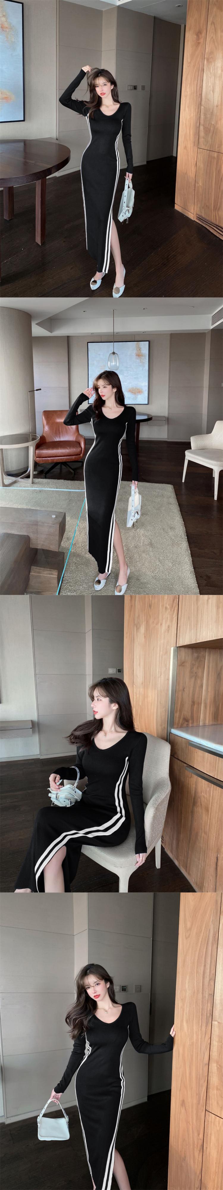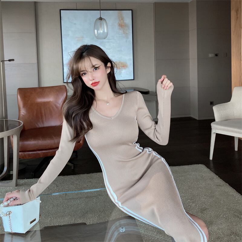 スタンダードウェスト薄手スタイルワンピーススリムニットゆったりスカート レディース秋物ウィンター ロング レトロ オータム 冬物 長袖 ウエスト mengruling14670818136 | Neatly