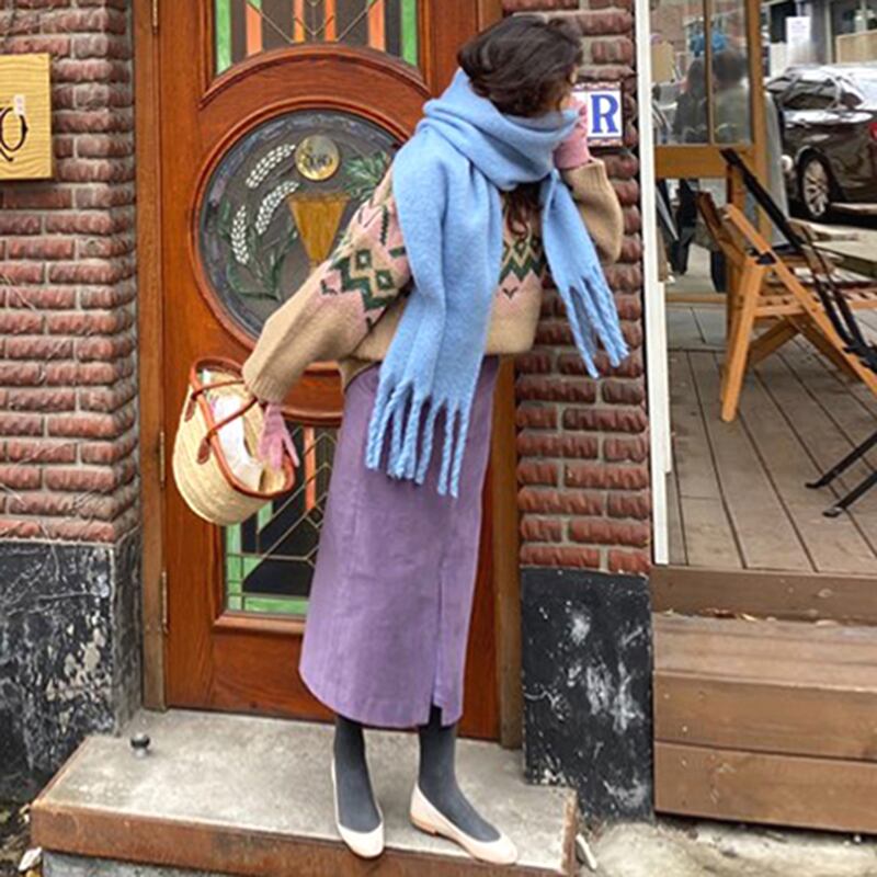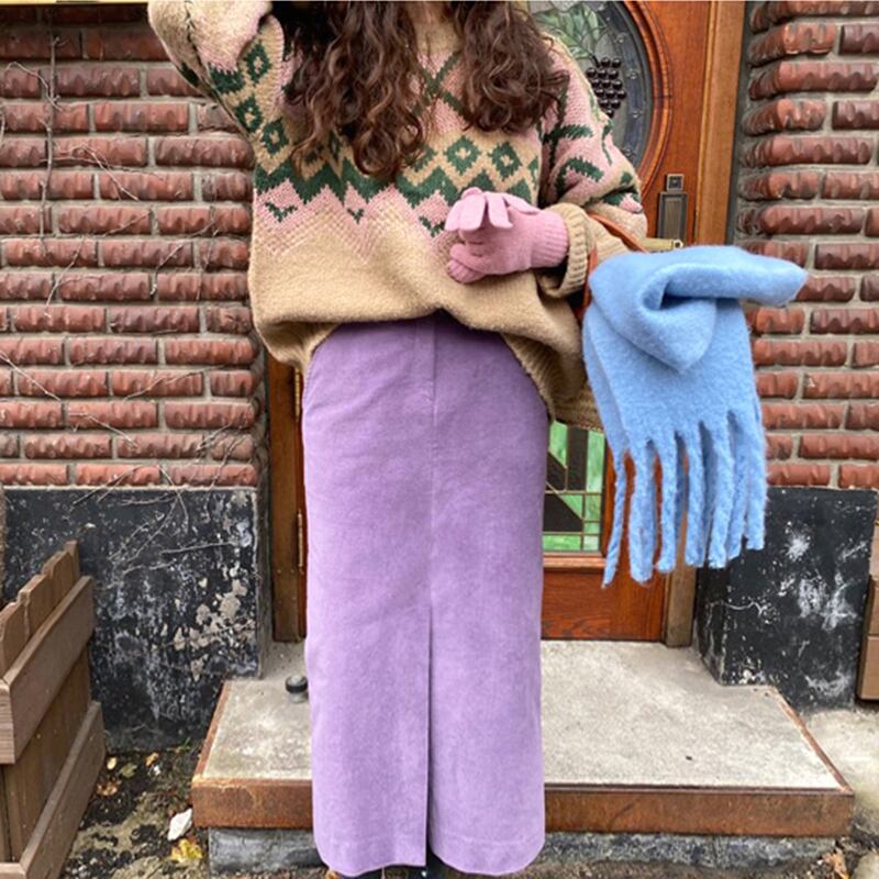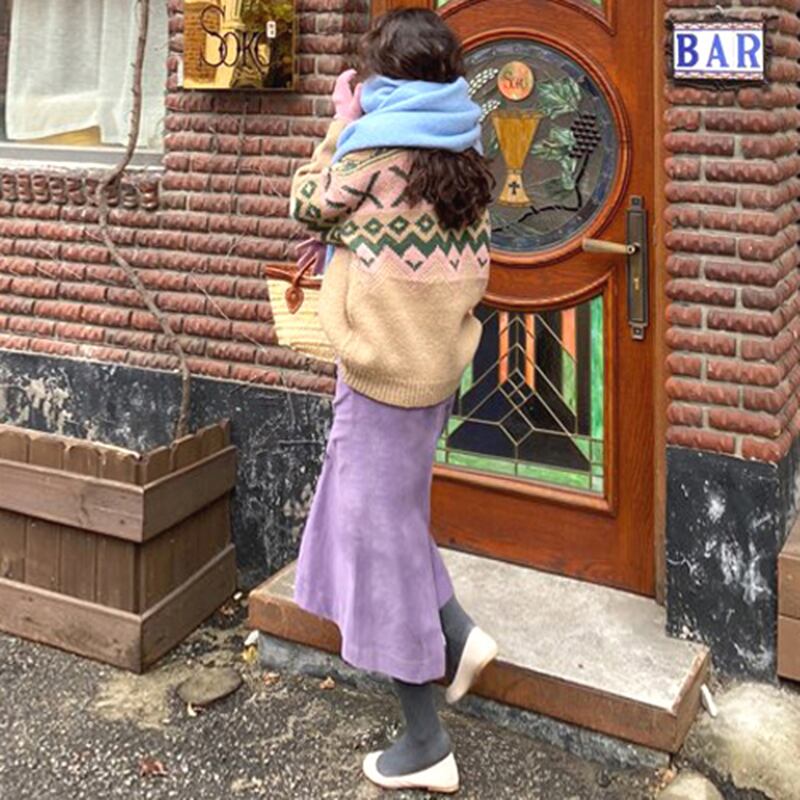 韓国ファッションNEWウィンタースタンダードラウンドネックパターンセーター ハイウェストウェスト薄手スカート レディース ロング レトロ 冬物 Oネック 長袖 ウエスト muzly13243250040 | Neatly