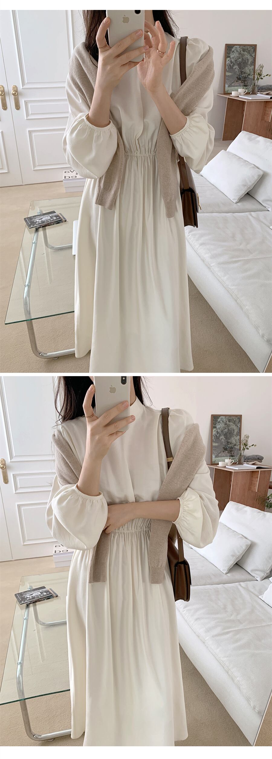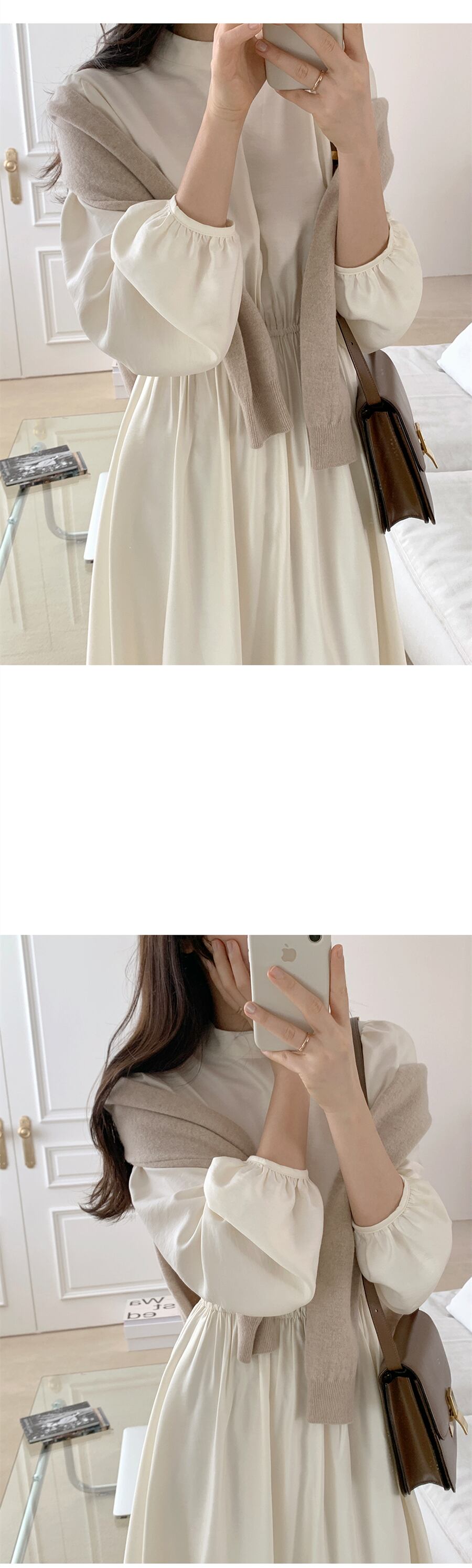 韓国ファッション秋物ミニマリストスタイルカラースリーブロングスカート ハイウェストウェスト長袖ワンピースレディース ランタンスリーブ オータム ウエスト muzly1783847452 | Neatly