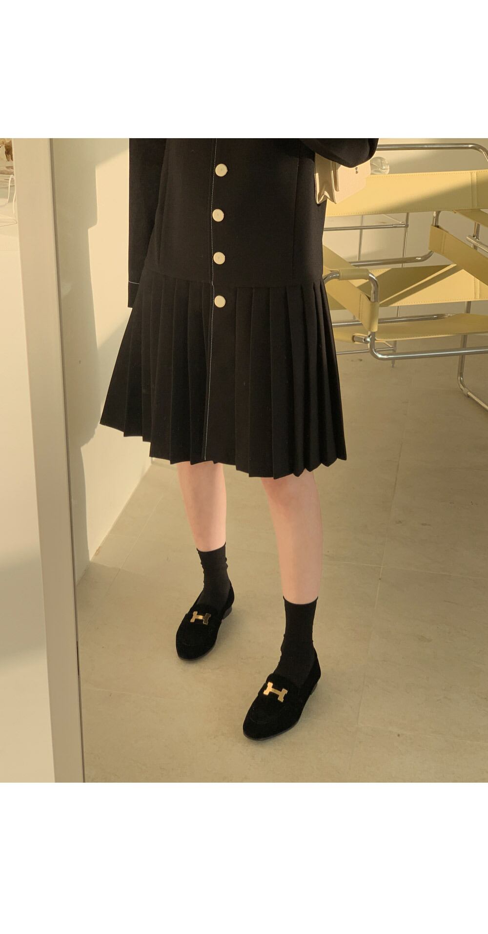 韓国ファッションスタンダードカラープリーツショートスカート ルーズラインワンピースレディース ロング レトロ 長袖 muzly97694934632