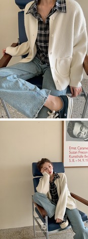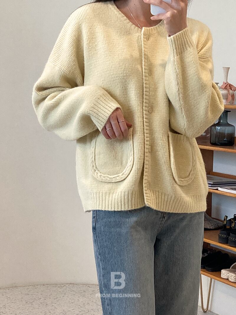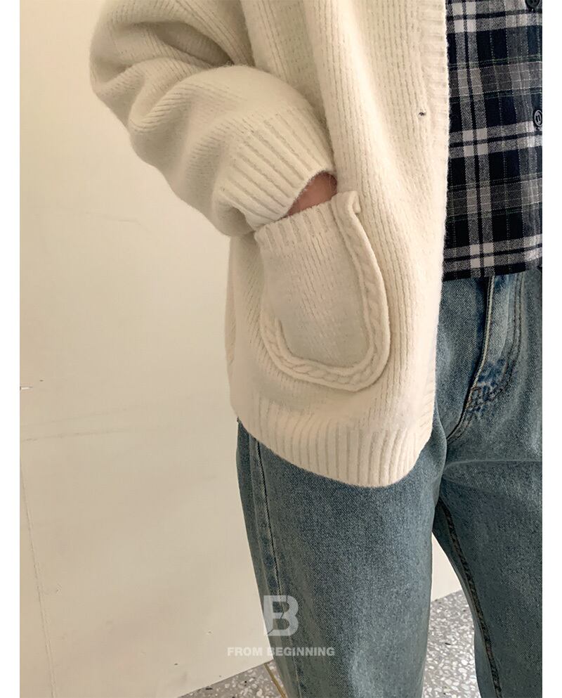 韓国ファッション秋物ウィンターポケットラウンドネックルーズニットカーディガンセーター ジャケット ロング 大人ガーリー スウィート キュート カジュアル オータム 冬物 Oネック 長袖 muzly58742016756 | Neatly
