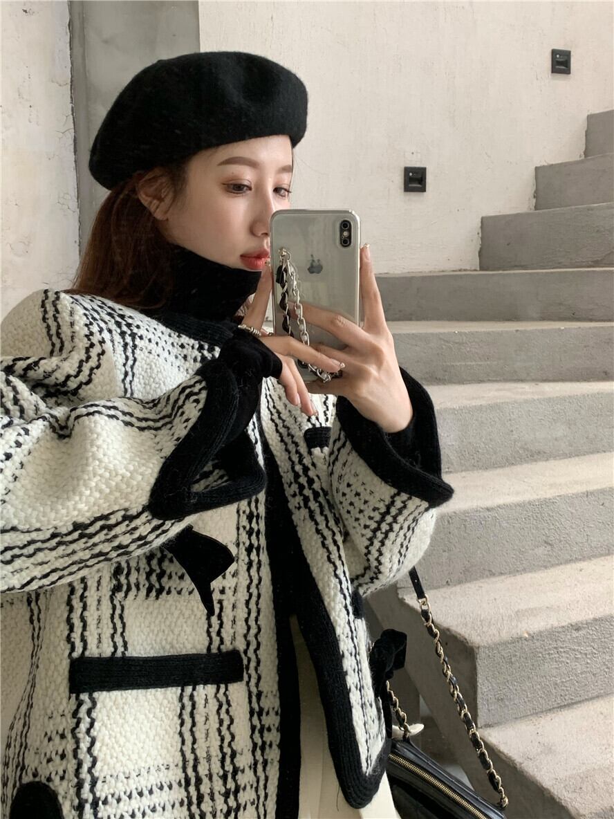 韓国ファッションNEW秋物ウィンタースタイルラウンドネックルーズカーディガンジャケット ハイウェストショートスカート ロング オータム 冬物 Oネック 長袖 ウエスト muzly68309477120 | Neatly