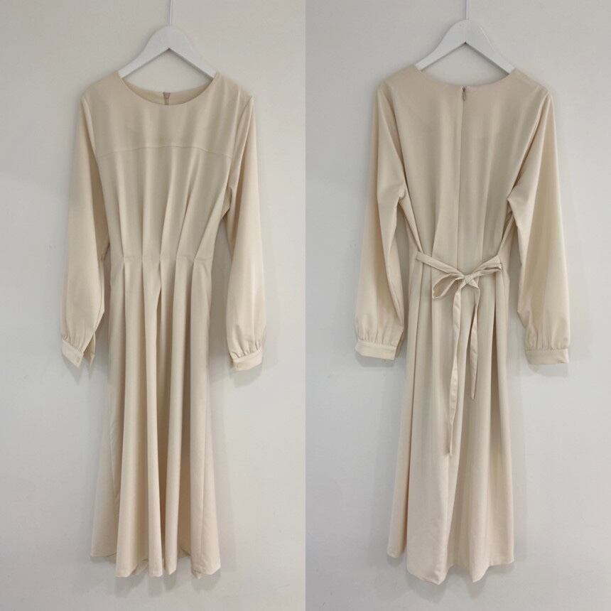 韓国ファッション秋物ソリッド カラーラウンドネックプリーツスカート ウェスト薄手ワンピースレディース ロング オータム Oネック ソリッドカラー 長袖 ウエスト ミドル丈 muzly59187423100 | Neatly
