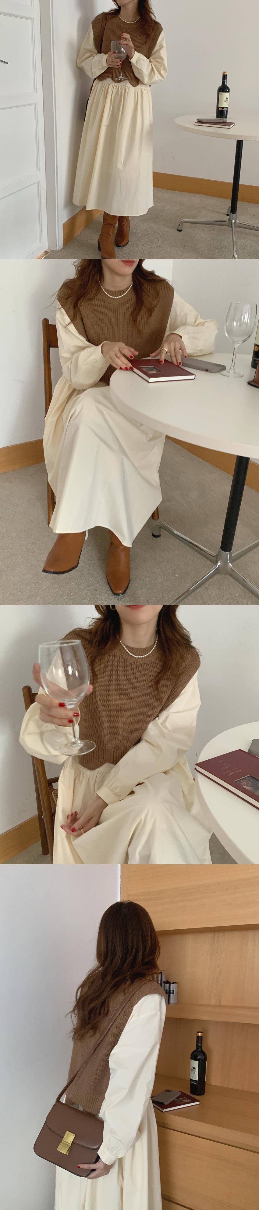 韓国ファッションNEW秋物スタンダードノースリーブニットハイウェストウェストルーズスリムワンピースレディース ロング レトロ オータム 長袖 ウエスト muzly16877498661 | Neatly
