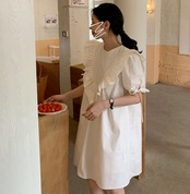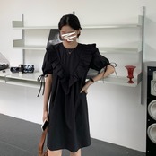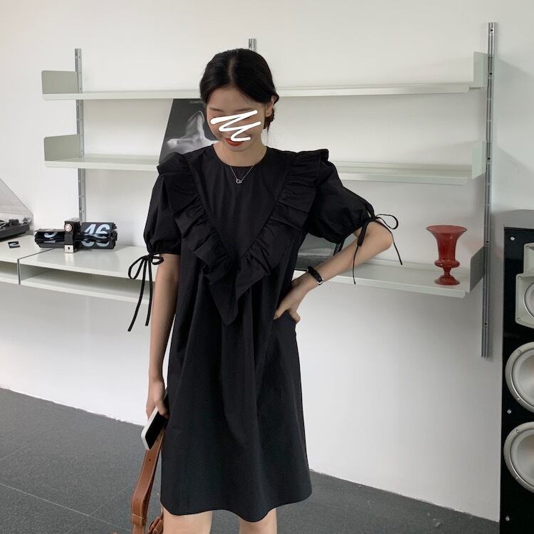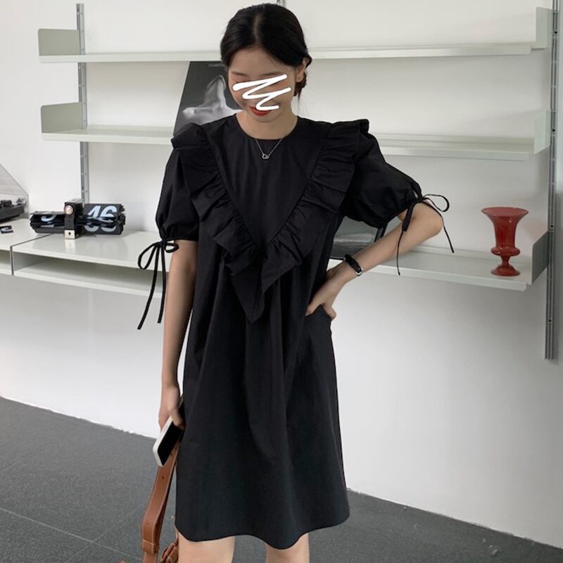 夏服ラウンドネックルーズ薄手ソリッド カラーミニ ワンピースワンピースレディース 夏物 Oネック ソリッドカラー パフスリーブ muzly17042655815