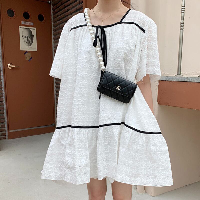 韓国ファッション夏服スタイルカラーショートスカート ルーズ半袖スリーブワンピース ハーフスリーブ 大人ガーリー スウィート キュート カジュアル 夏物 スクウェア muzly69617341685 | Neatly