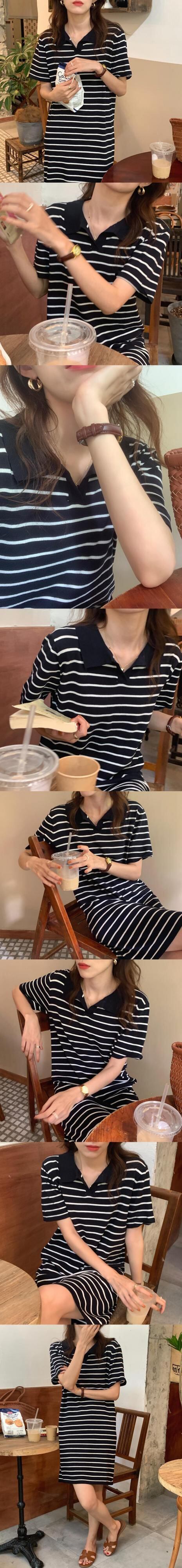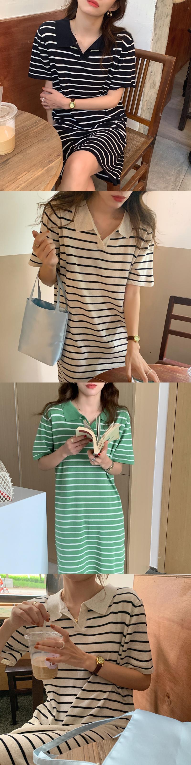 韓国ファッションNEWカラーカジュアルストライプスカート ルーズニット半袖スリーブワンピース ショート ハーフスリーブ 大人ガーリー スウィート キュート muzly92389363518 | Neatly