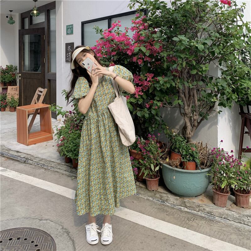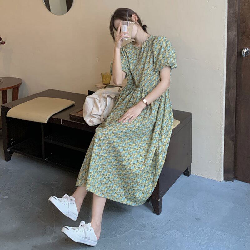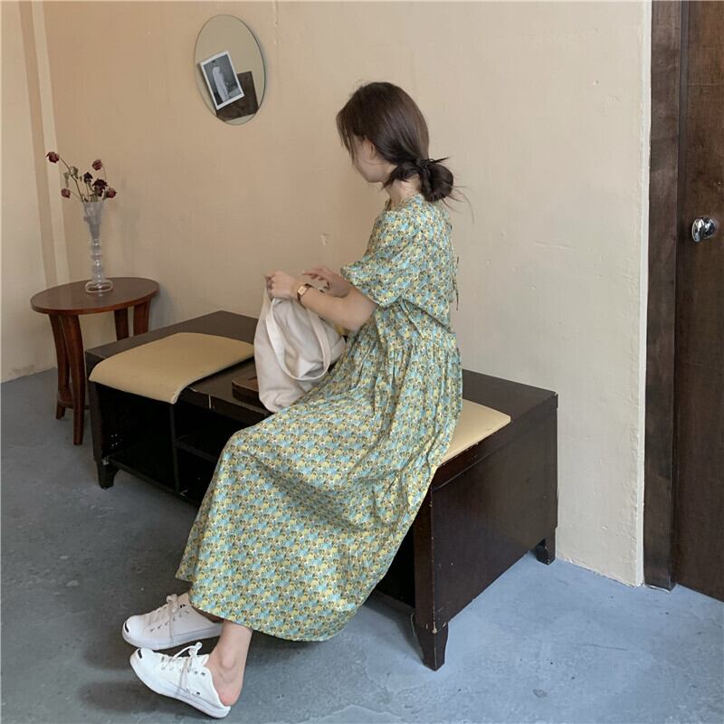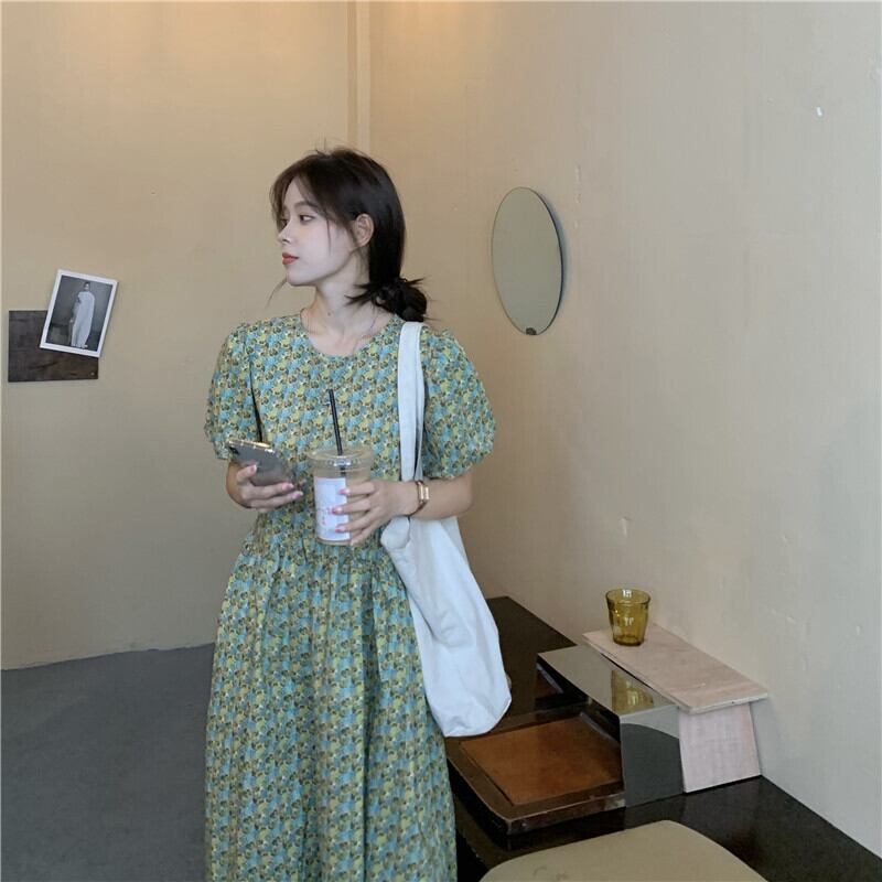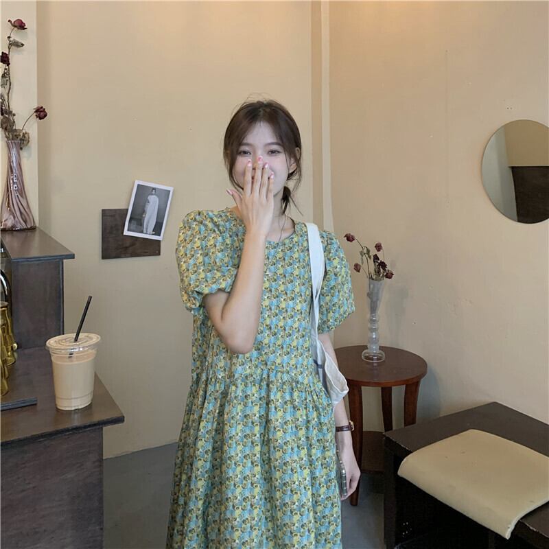 夏服ラウンドネックスリーブフローラルワンピースハイウェストウェストルーズ半袖レディース ショート ハーフスリーブ 大人ガーリー スウィート キュート カジュアル 夏物 花柄 Oネック ウエスト muzly4433584934 | Neatly