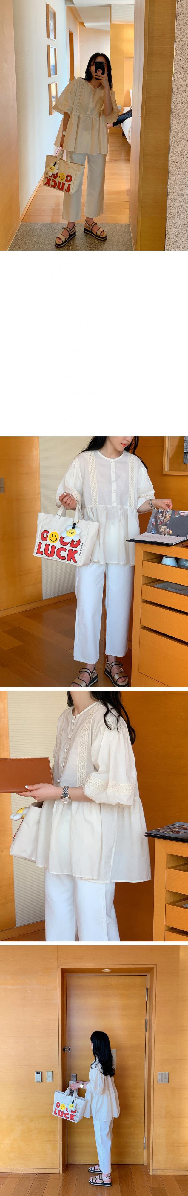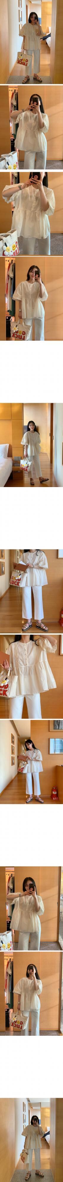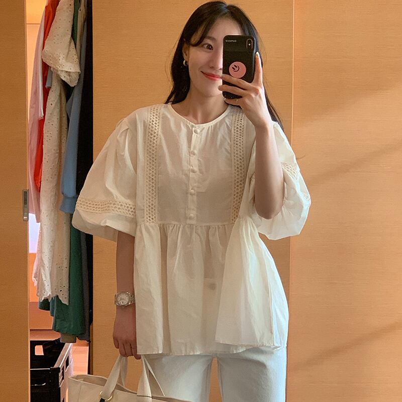 夏服ラウンドネックスリーブシャツ ルーズレースレディース ランタンスリーブ 大人ガーリー スウィート キュート カジュアル 夏物 Oネック ステッチ muzly81768943358 | Neatly