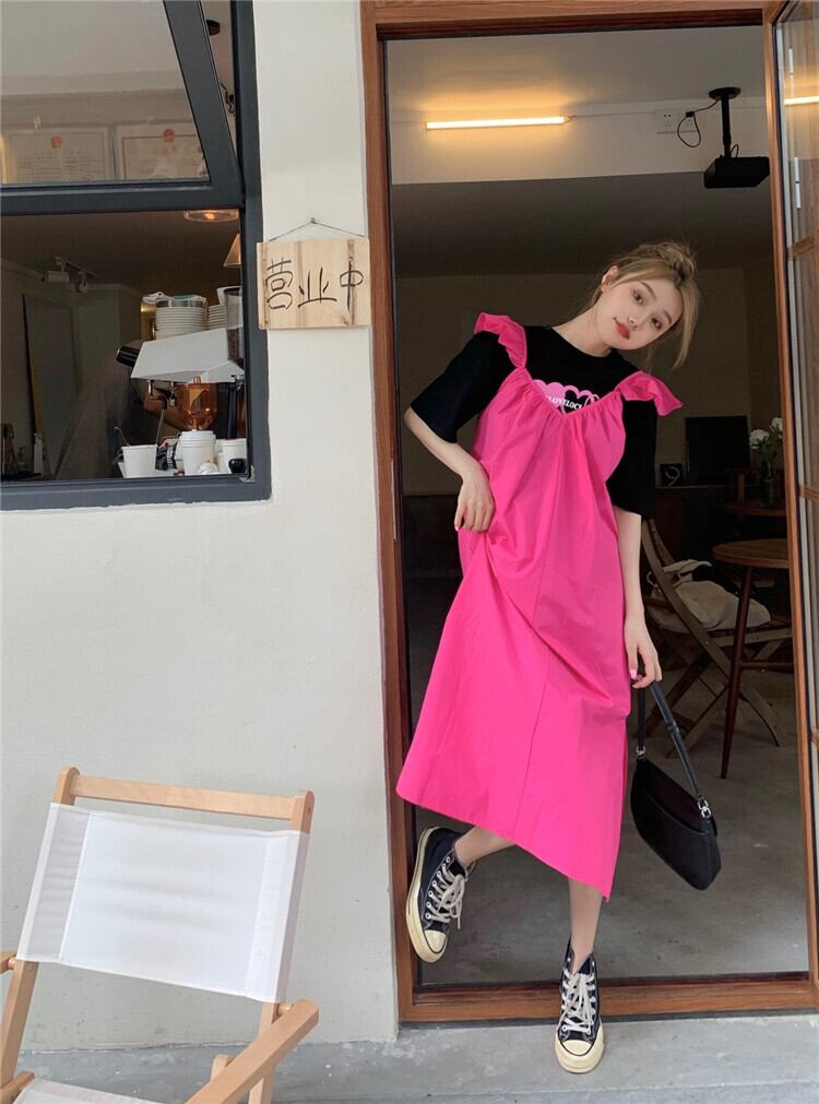 色:黒のTシャツ6565,ローズレッドドレス6539