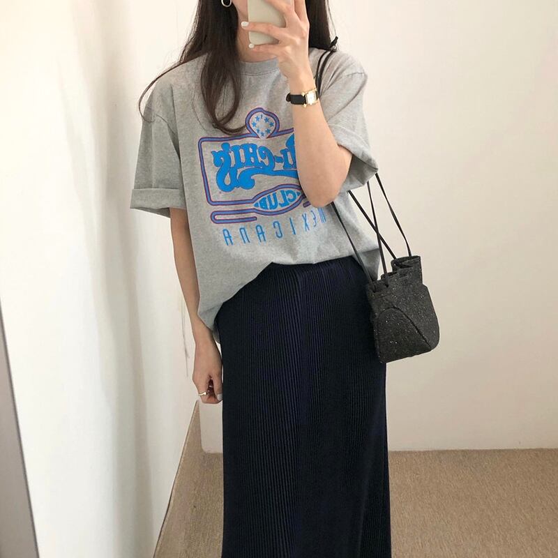 色:白いTシャツ,グレーのTシャツ,緑のスカート,黒スカート