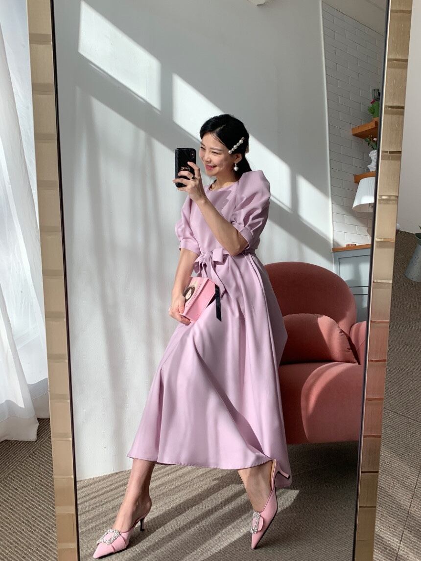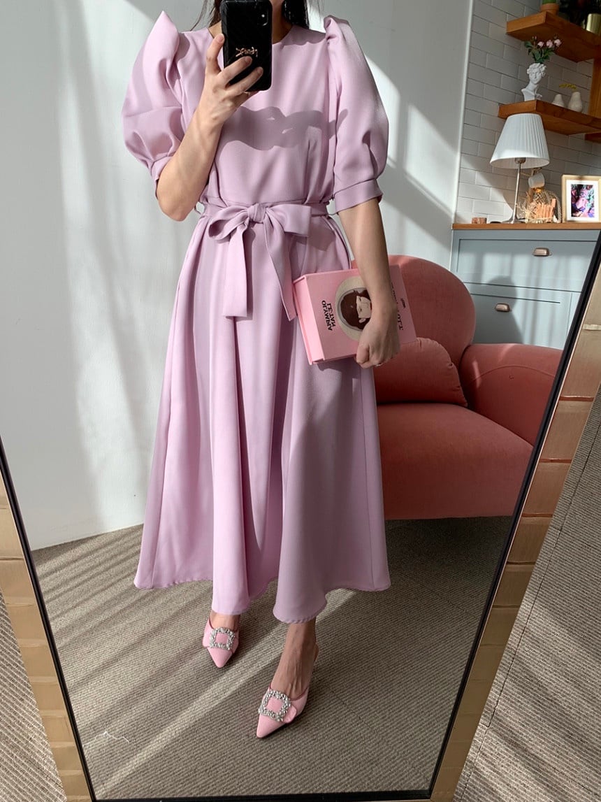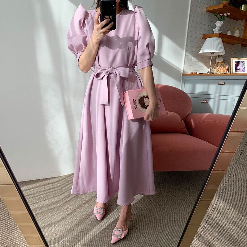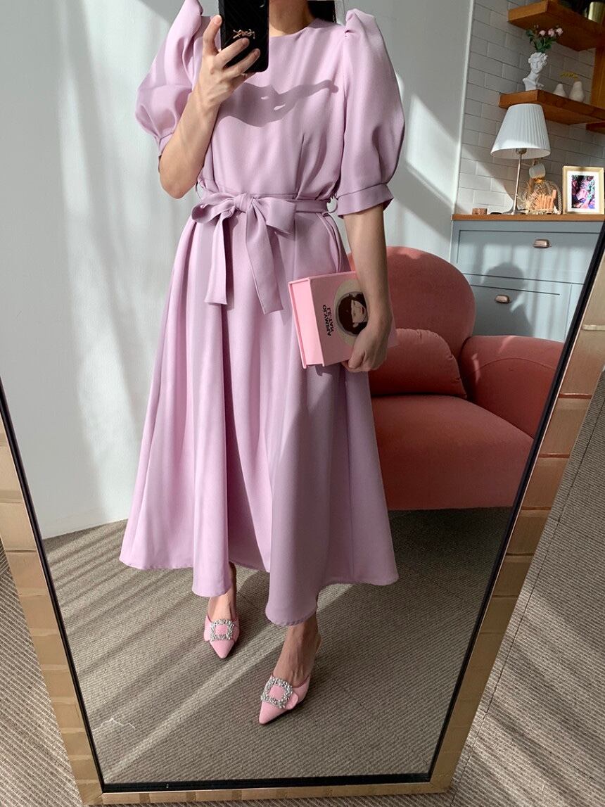 夏服ソリッド カラーラウンドネックスリーブロングスカート ウェストミニ ワンピースワンピース レース 夏物 Oネック レースアップ ソリッドカラー ウエスト muzly61423301724 | Neatly