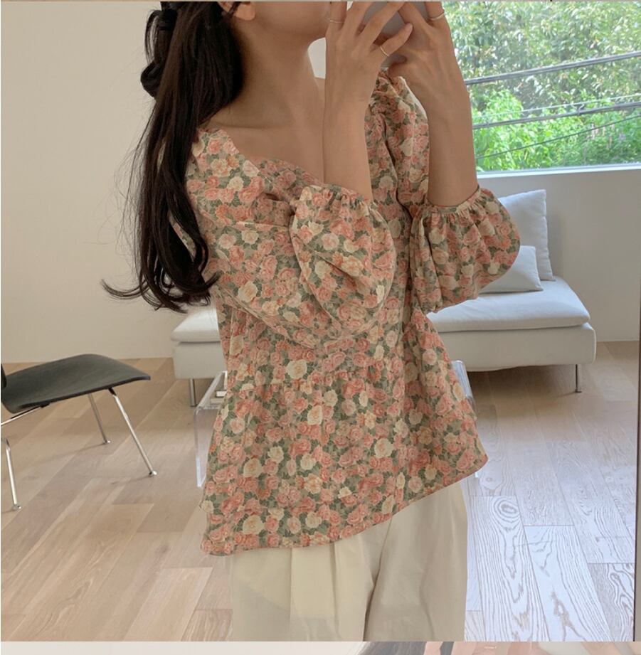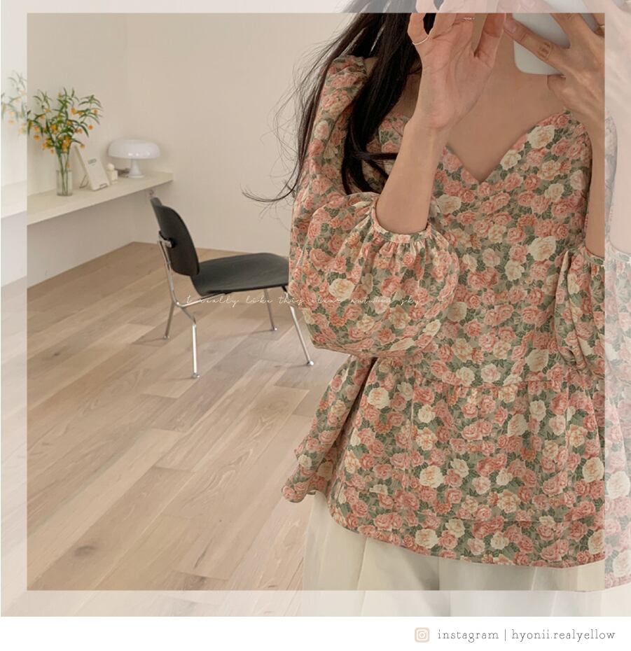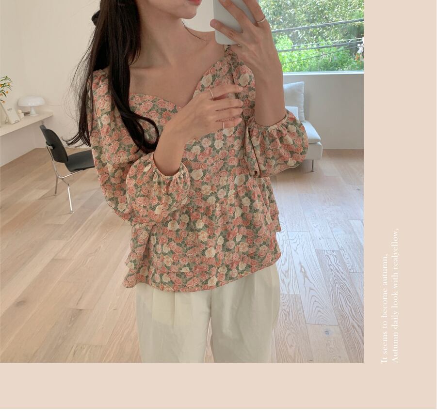 夏服スタンダードハートカラーフローラルブラウス スリーブルーズシャツ ロング レトロ 大人ガーリー スウィート キュート カジュアル 夏物 花柄 長袖 muzly37552347192 | Neatly