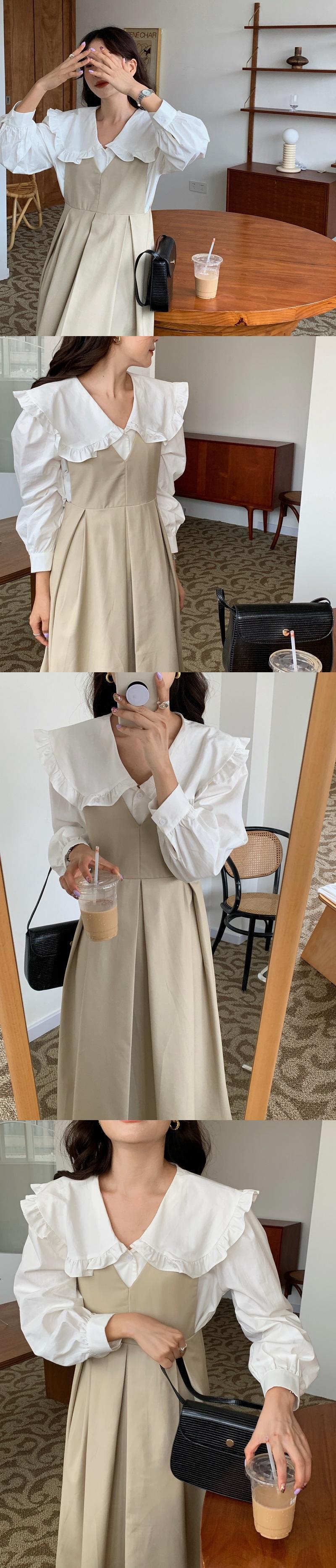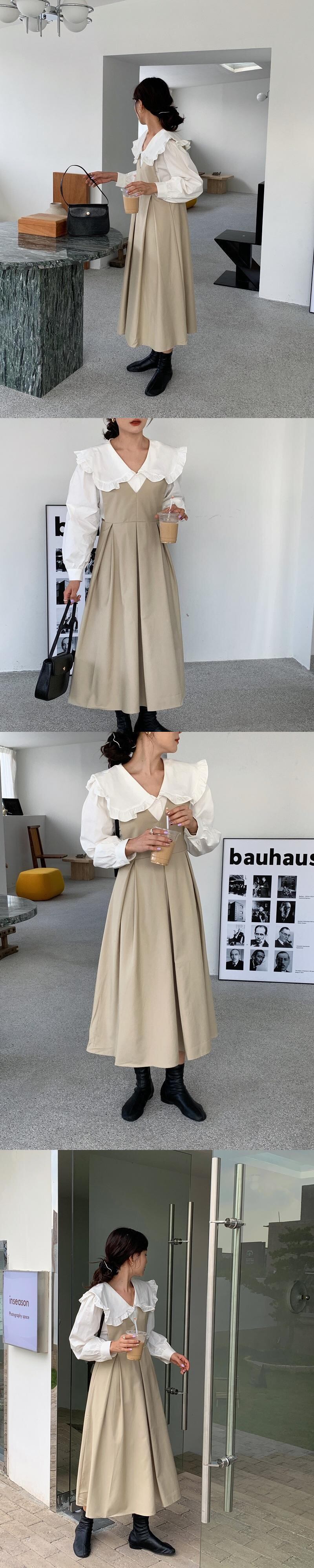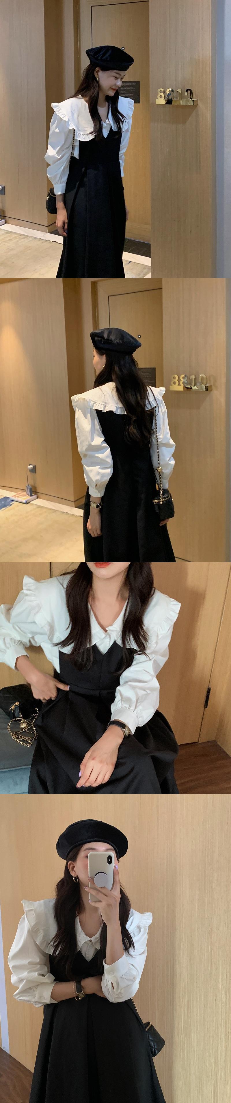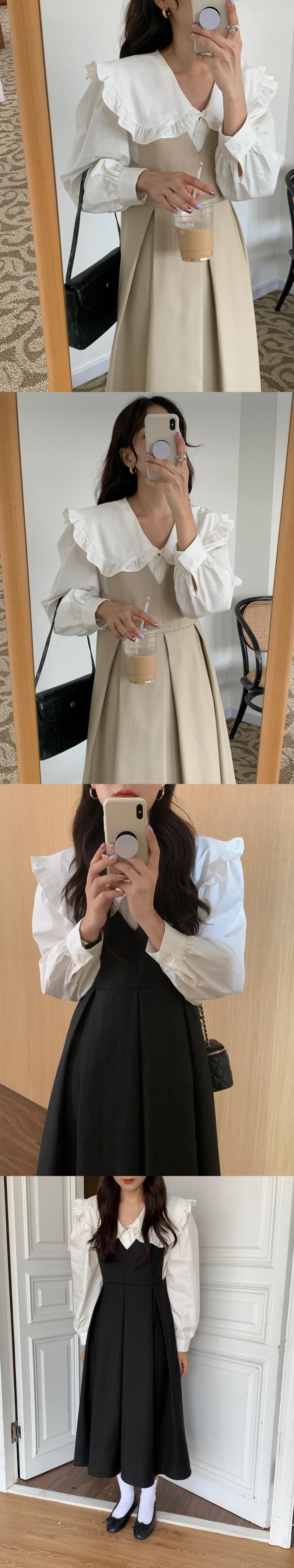 色:白のシャツ,黒のタンクスカート,アプリコットベスト