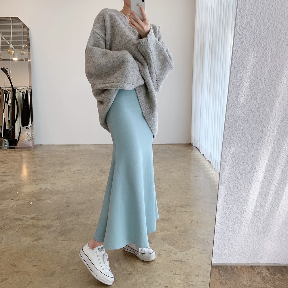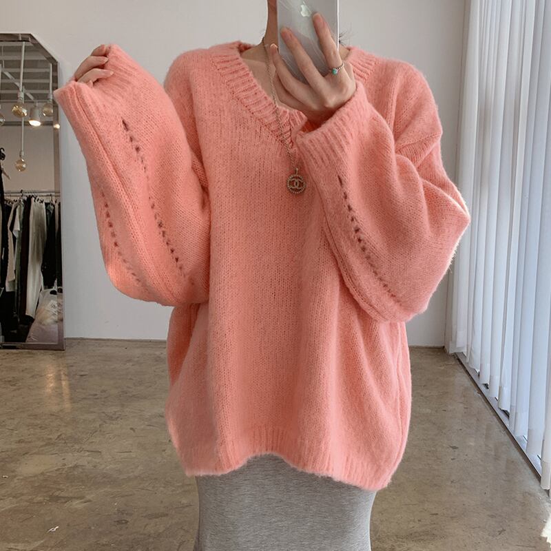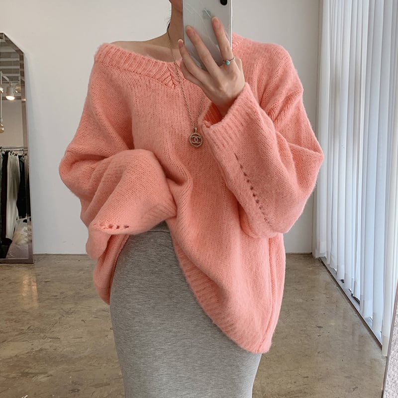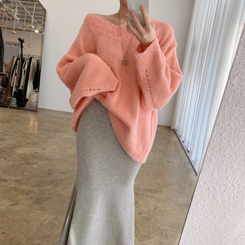 韓国ファッションNEWウィンターソリッド カラーVネックプルオーバー ブラウス ルーズセーター レディース ロング 冬物 ソリッドカラー 長袖 ミドル丈 muzly79486733871 | Neatly
