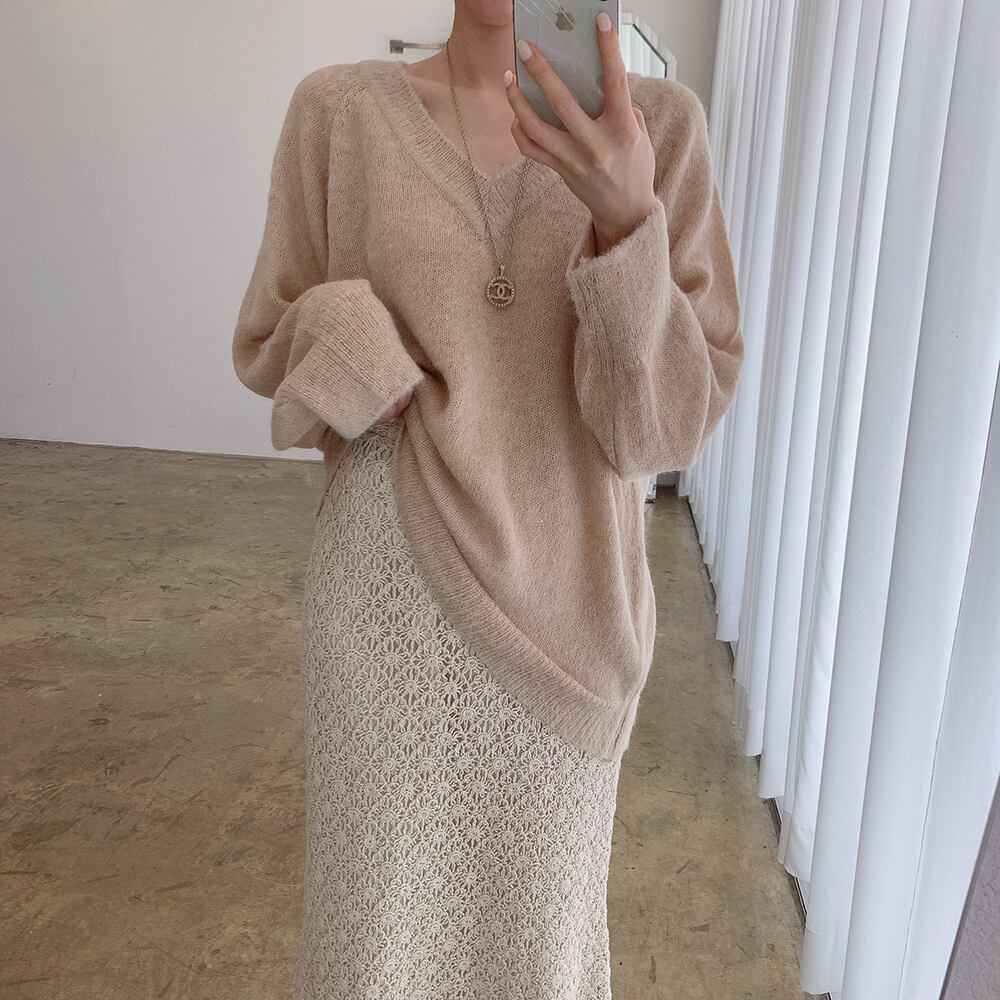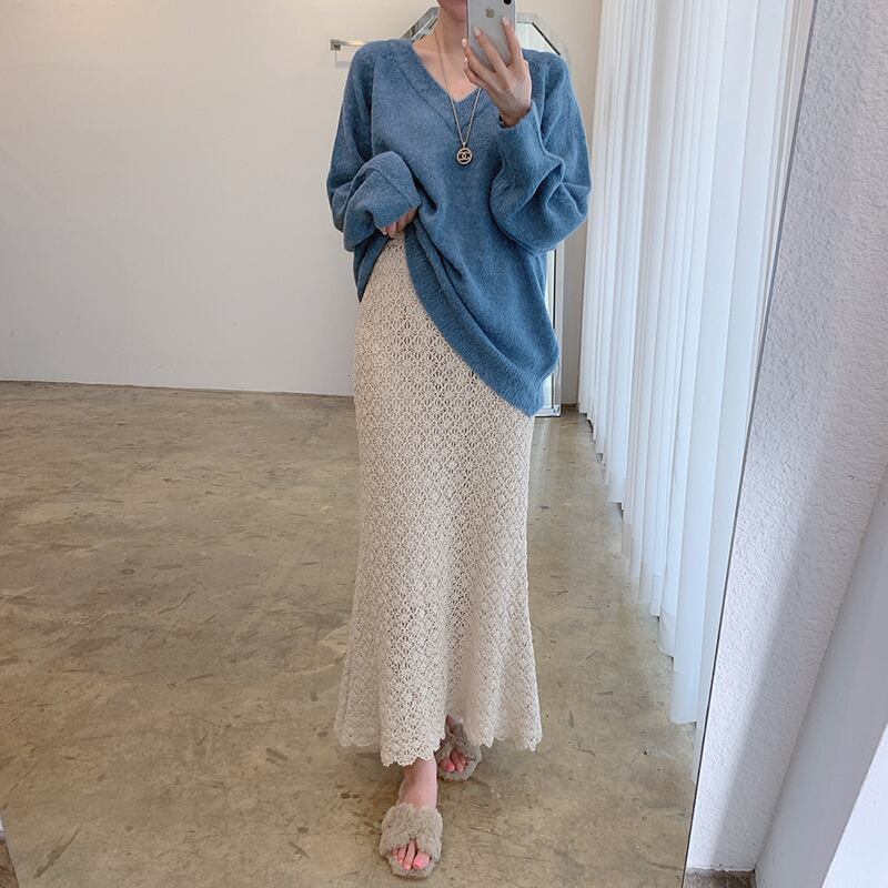 色:アプリコットセーター,青いセーター,スカート