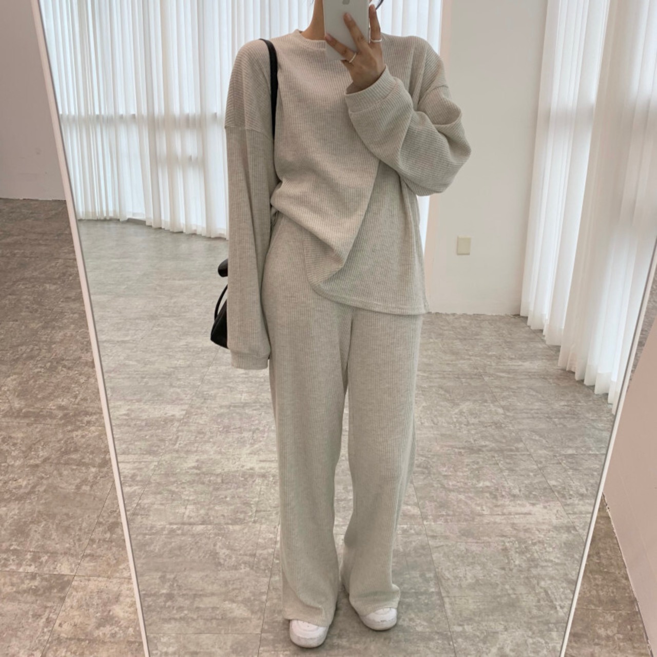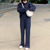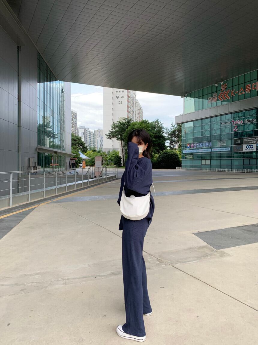 色:ベージュトップ,ネイビーブルーのシャツ,グレートップ,オフホワイトのズボン,ネイビーブルーのズボン,グレーのズボン